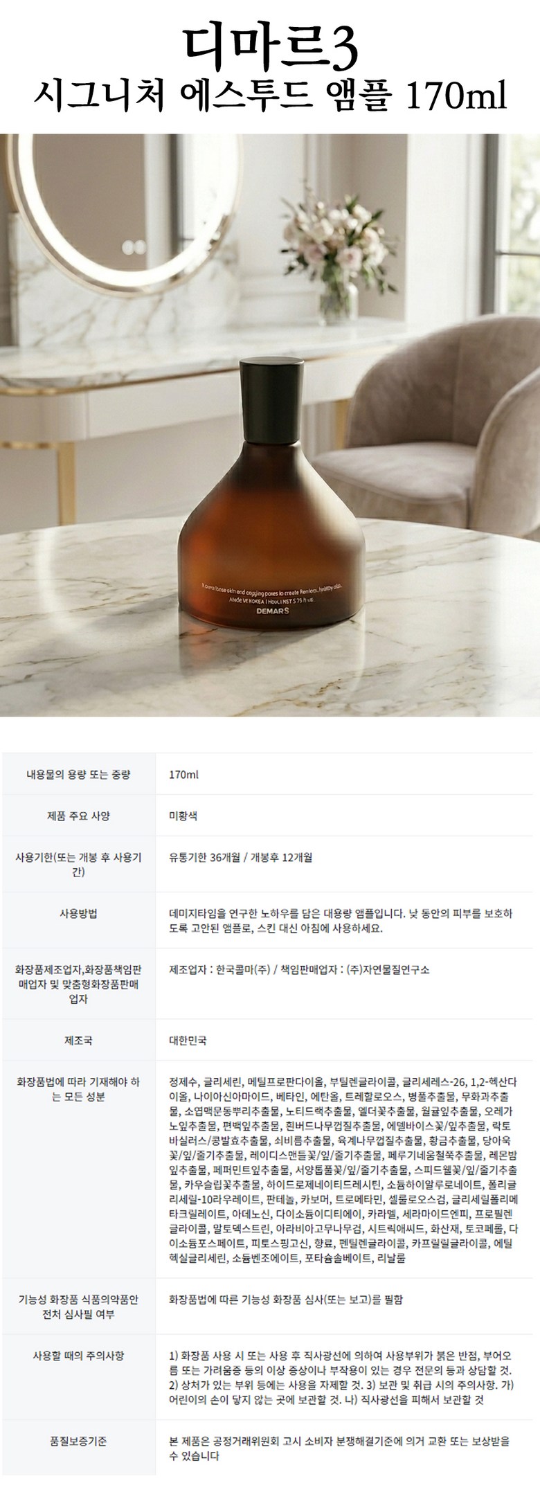 | 화장품제조업자, 화장품책임판매업자 및 맞춤형화장품판매업자 | 상품 상세페이지 참조 | 제조국 | 상품 상세페이지 참조 |