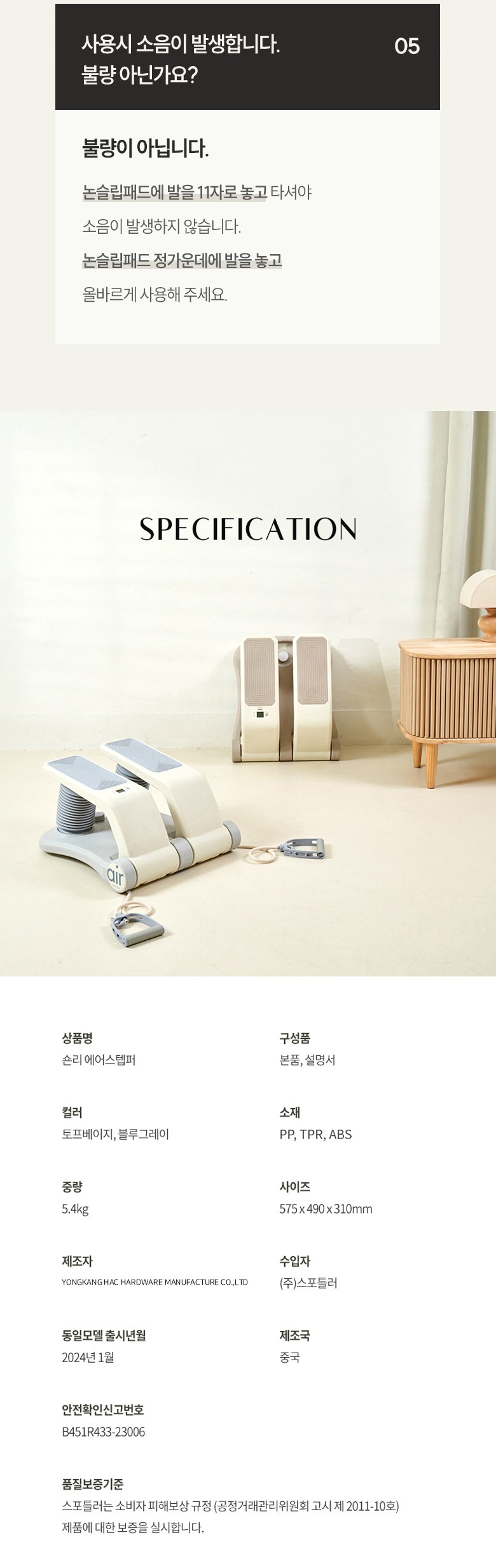 | 품명 및 모델명 | 헬스기구(스텝퍼) / HAC001S-6 | KC 인증정보 | 본품: B451R433-23006, 건전지: B053R5053-21012 |