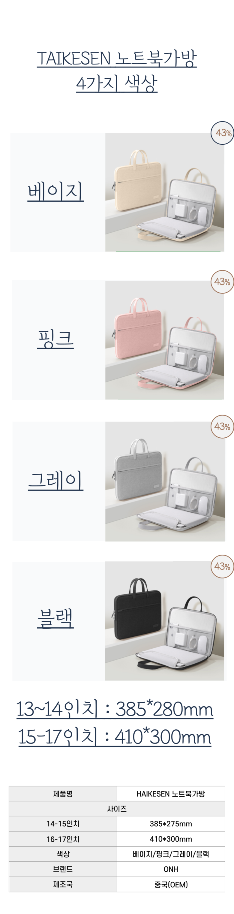 - 수납사이즈: 36~39.7cm(15.6인치)