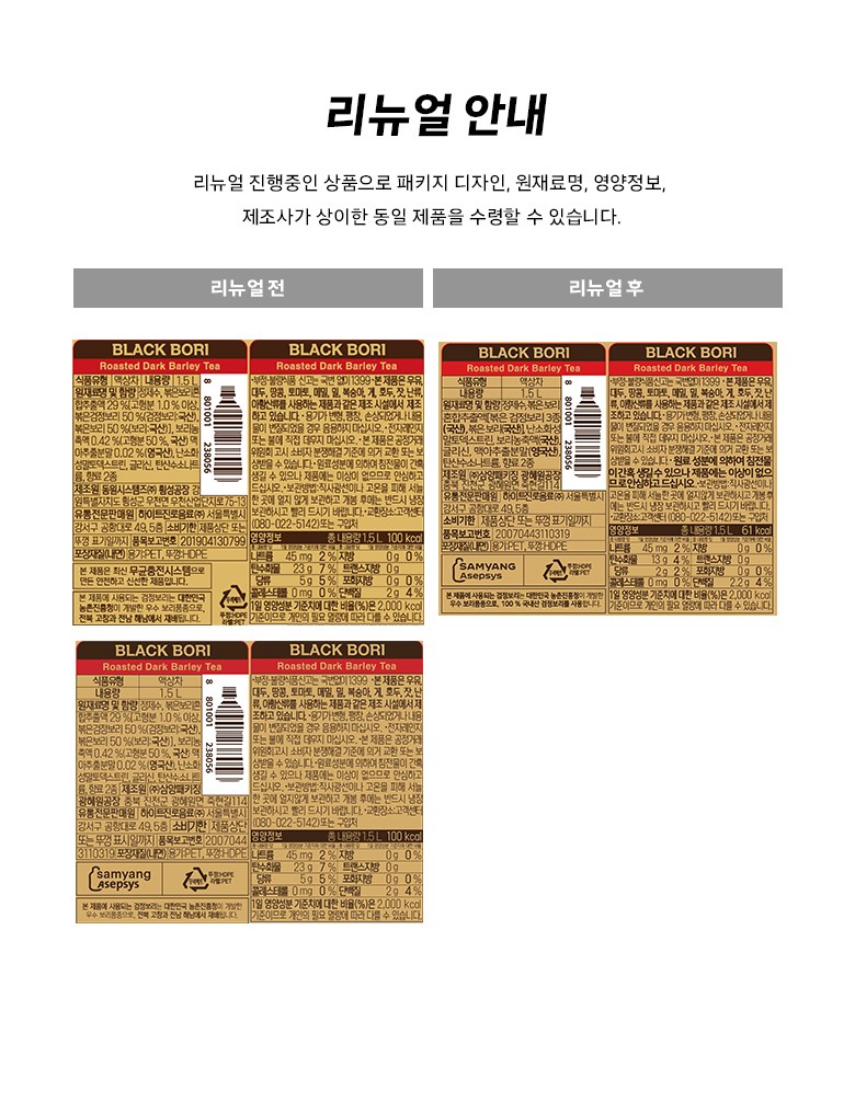 - 용기 타입: 플라스틱병