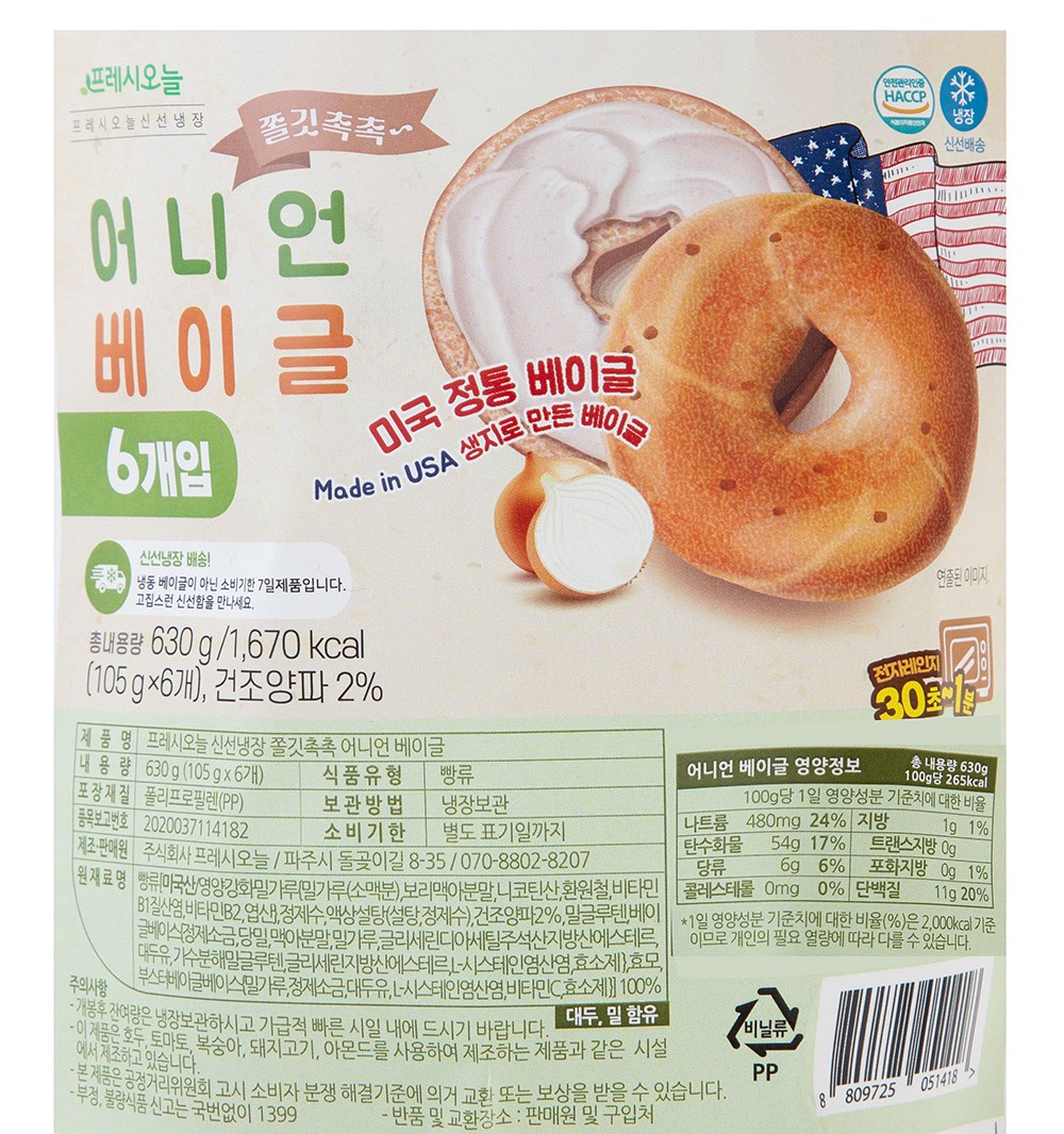 알싸한 매력을 더한 어니언 베이글이에요. 쫀득하면서도 촉촉한 식감이 돋보이지요. 따뜻하게 조리해 한입 먹어보면, 담백한 풍미에 자꾸만 손이 간답니다. 부드러운 크림치즈나 달콤한 잼을 곁들여 드셔보세요.