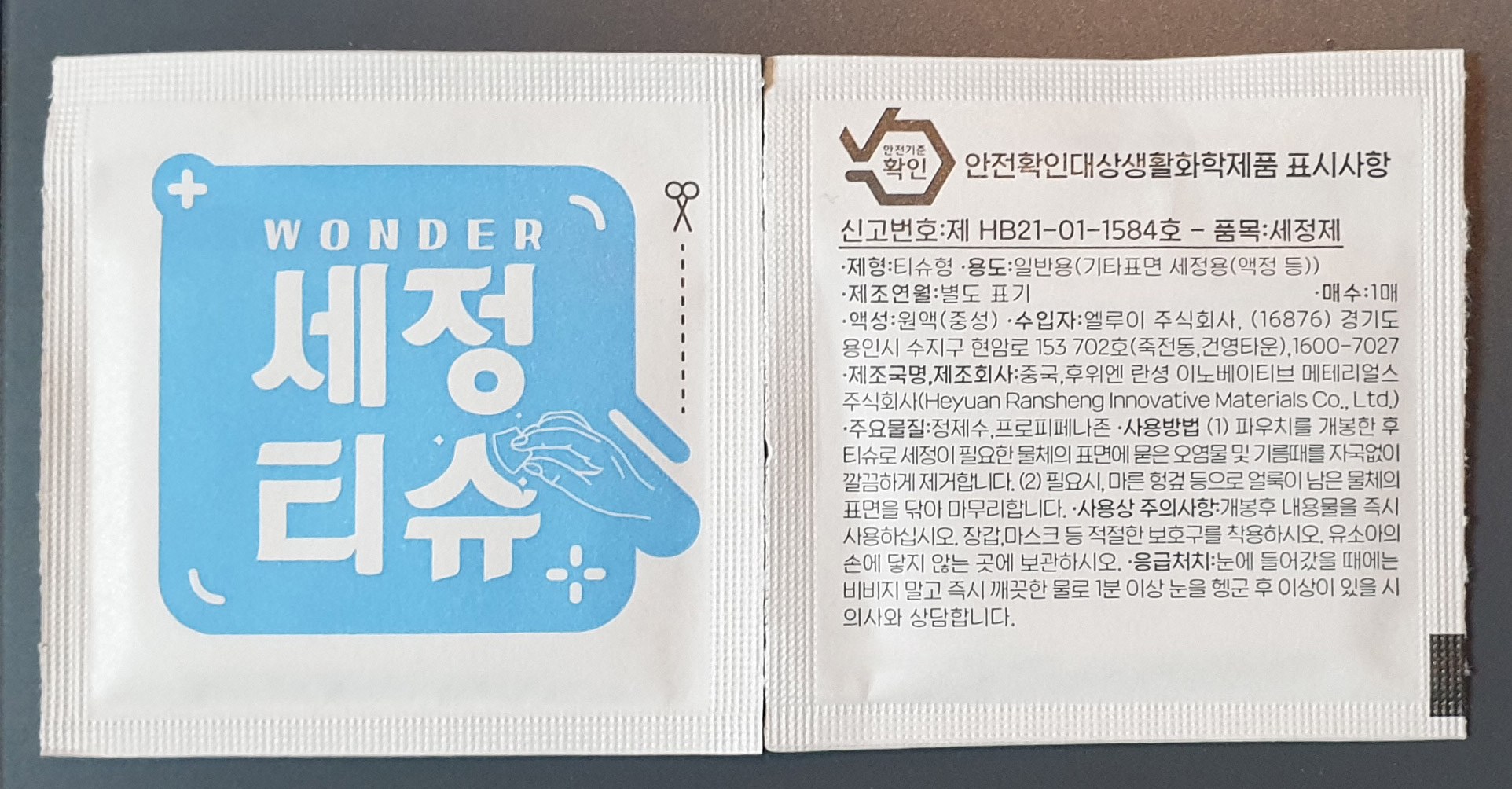 | 제조국(원산지) | 본품 : 중국 / 알콜솜 : 컨텐츠참조 | 제조자(수입자) | 본품 : ELLUI CO.,Ltd / 업체미제공 / 알콜솜 : 컨텐츠참조 |