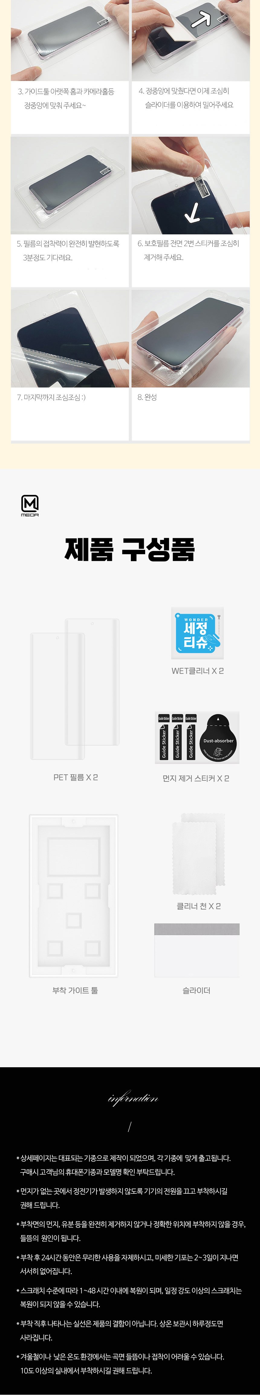 | 품명 및 모델명 | 메오르 쉬운부착 PET 휴대폰 액정보호필름 2매 + 쉬운부착 가이드툴 1세트 갤럭시 S22플러스 (SM-S906) | 인증/허가 사항 | 본품 : 해당없음 / 알콜솜 : HB21-01-1584 |