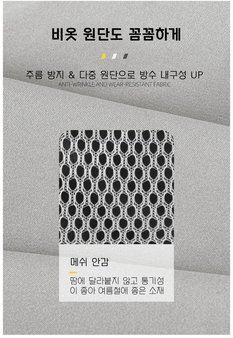 | 제품 소재 | 제품 소재:폴리에스터 + TPU필름 + 에어 메쉬 / 기능성여부:대상아님 | 색상 | 색상:블랙, 그레이, 네온 |