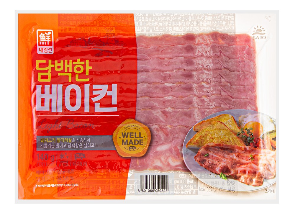 노릇노릇하게 구워 다양한 요리에 활용하기 좋은, 담백한 베이컨이에요. 돼지고기 본연의 고소한 감칠맛이 먹는 즐거움을 더해주지요. 조리하기 쉽도록 얇게 정형되어 나왔어요. 구워서 밥과 함께 드셔도 좋고, 볶음밥이나 샌드위치에 넣어 드셔도 좋아요.