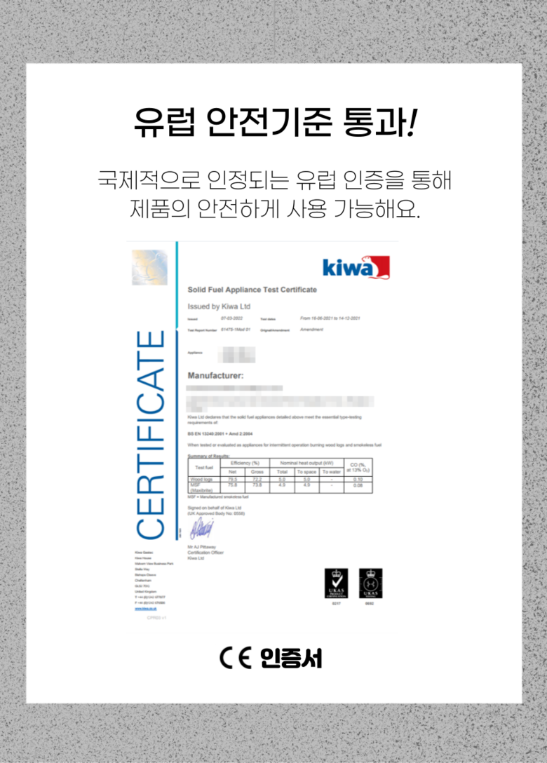 | 품명 및 모델명 | 풍년에코텍 주물난로 | 인증/허가 사항 | 해당없음 |