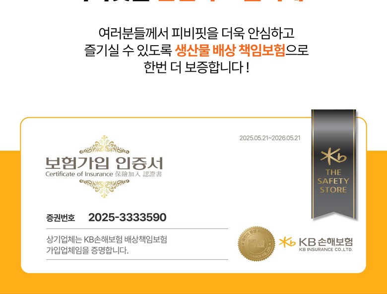 구매안전 서비스 | 02-006-00042 서비스 가입사실 확인 > 본 판매자는 고객님의 안전거래를 위해 관련 법률에 의거하여 쿠팡페이의 구매안전서비스를 적용하고 있습니다. | ||