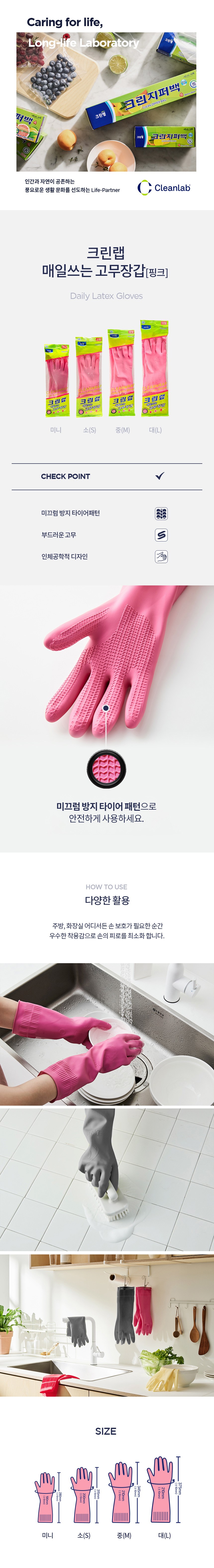 | 품명 및 모델명 | 크린랲 매일쓰는 고무장갑 양손 세트, 핑크, 중(M) | 재질 | 고무 |