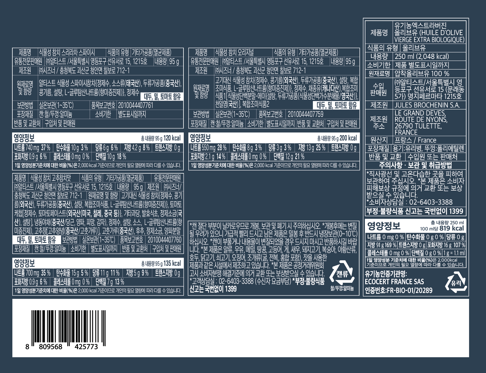 알티스트 식물성 참치 & 올리브유 선물세트 1호 + 쇼핑백