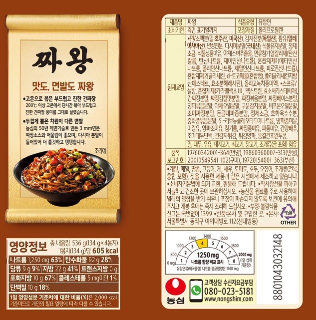 | 제품명 | 짜왕 | 식품의 유형 | 컨텐츠 참조 |