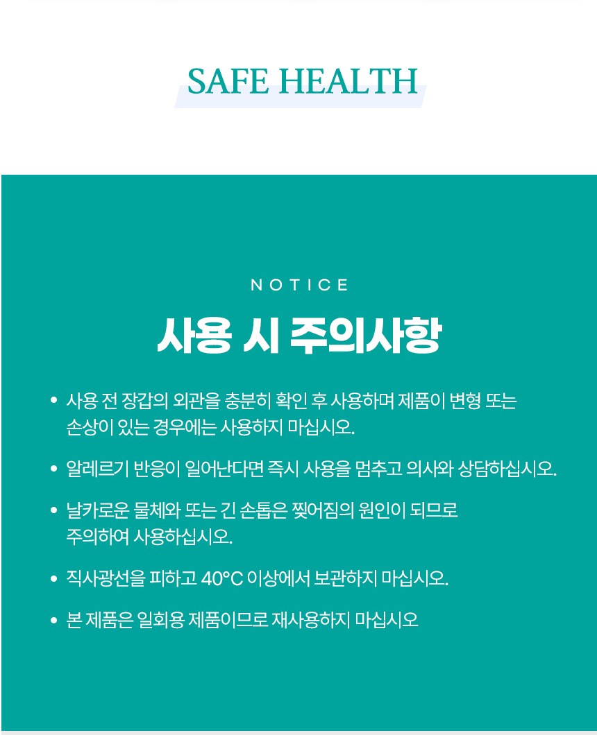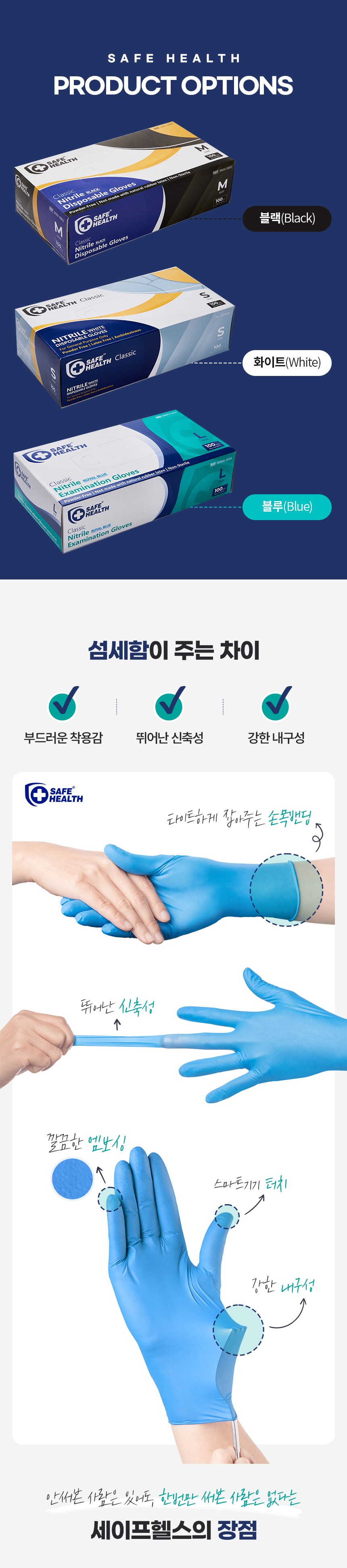 | 품명 및 모델명 | 세이프헬스 니트릴장갑 | 재질 | 고무제(니트릴고무) |