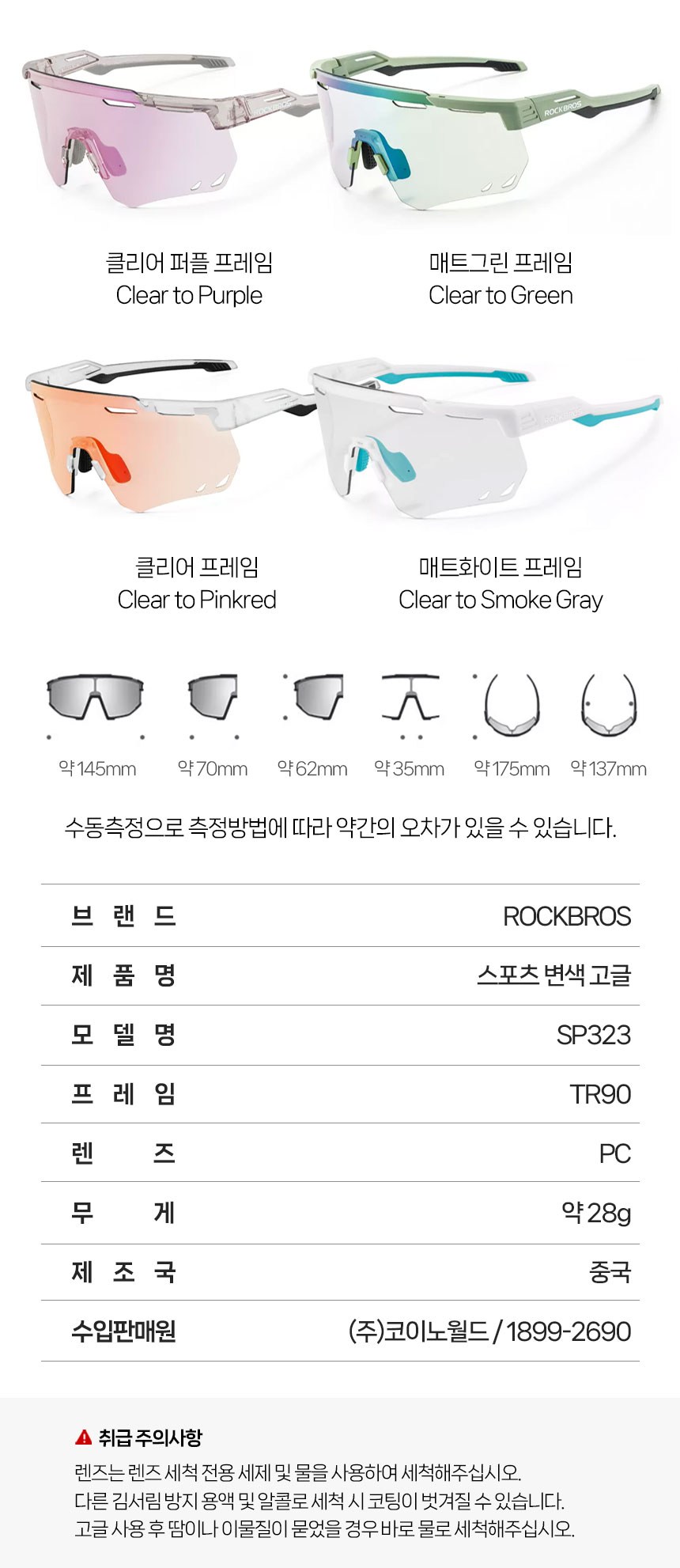 | 품명 및 모델명 | 락브로스 스포츠 변색 도수클립 자전거 고글 SP323 | KC 인증정보 | 해당없음 |