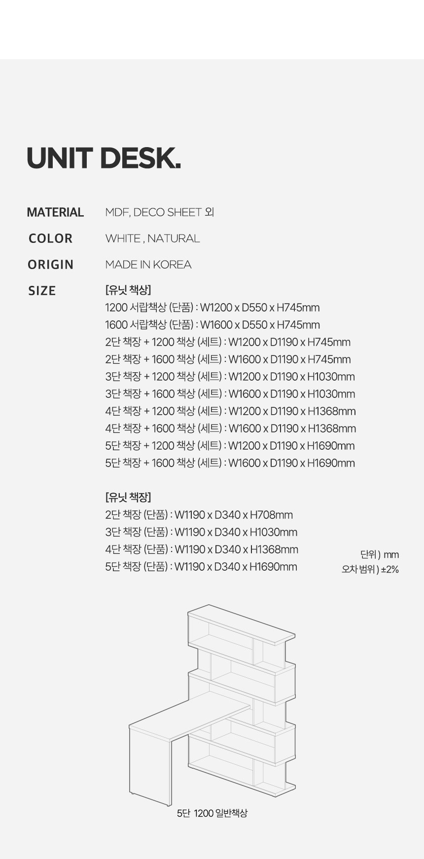 | 색상 | 내추럴 | 구성품 | 책상 + 5단 책장 |