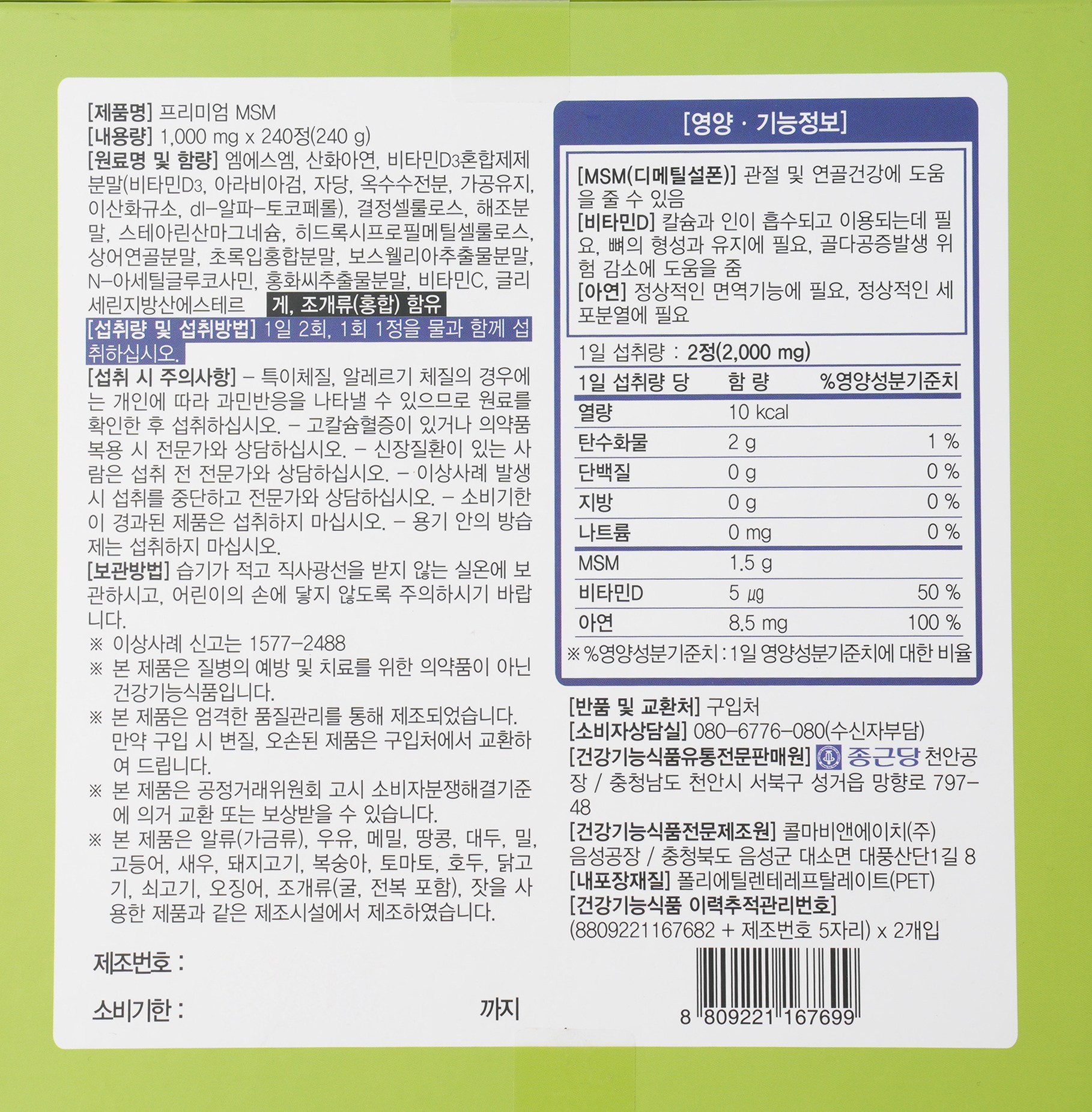 - 총 캡슐/정 수량: 240정