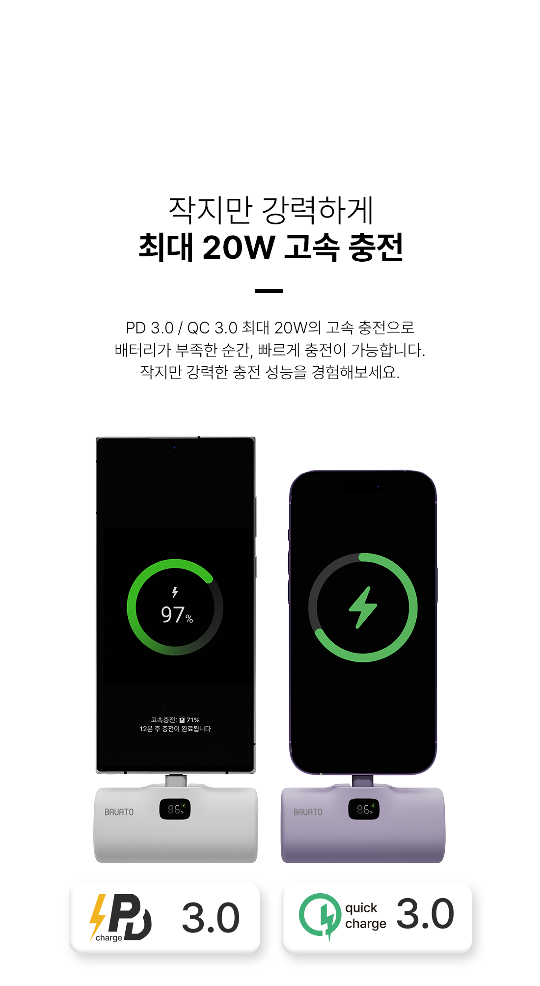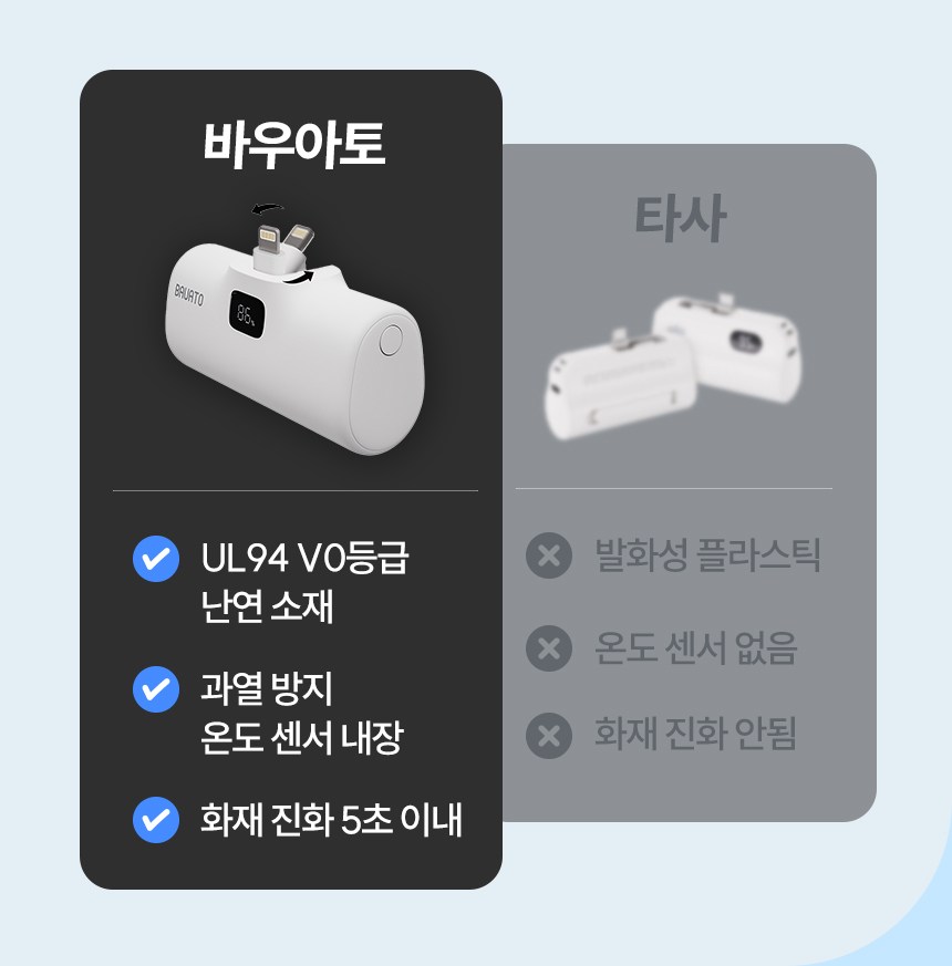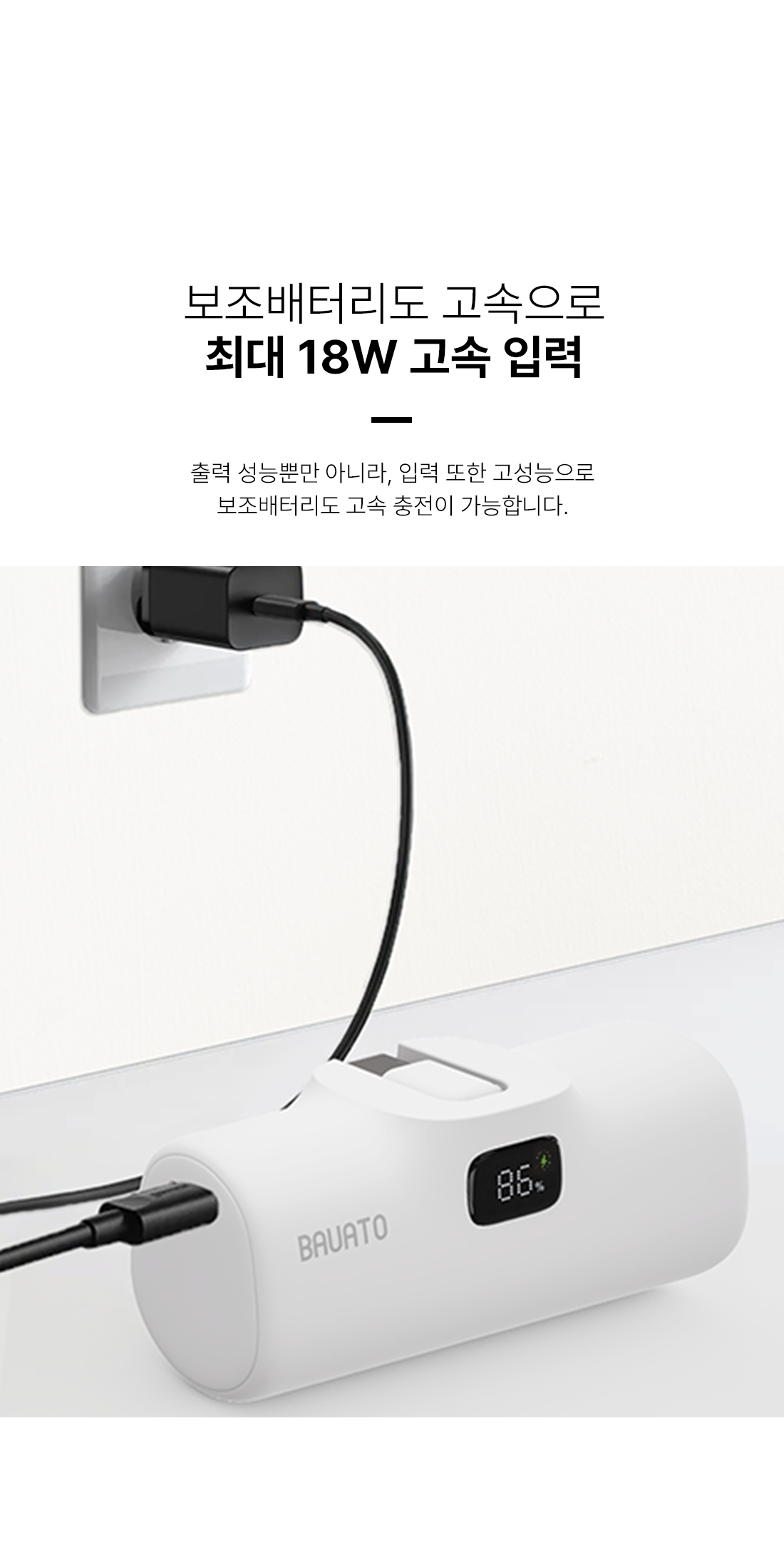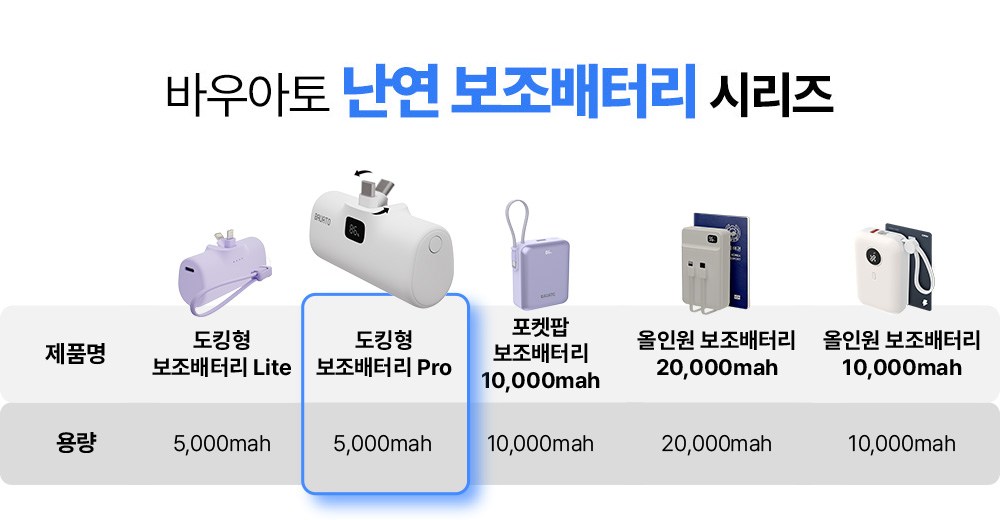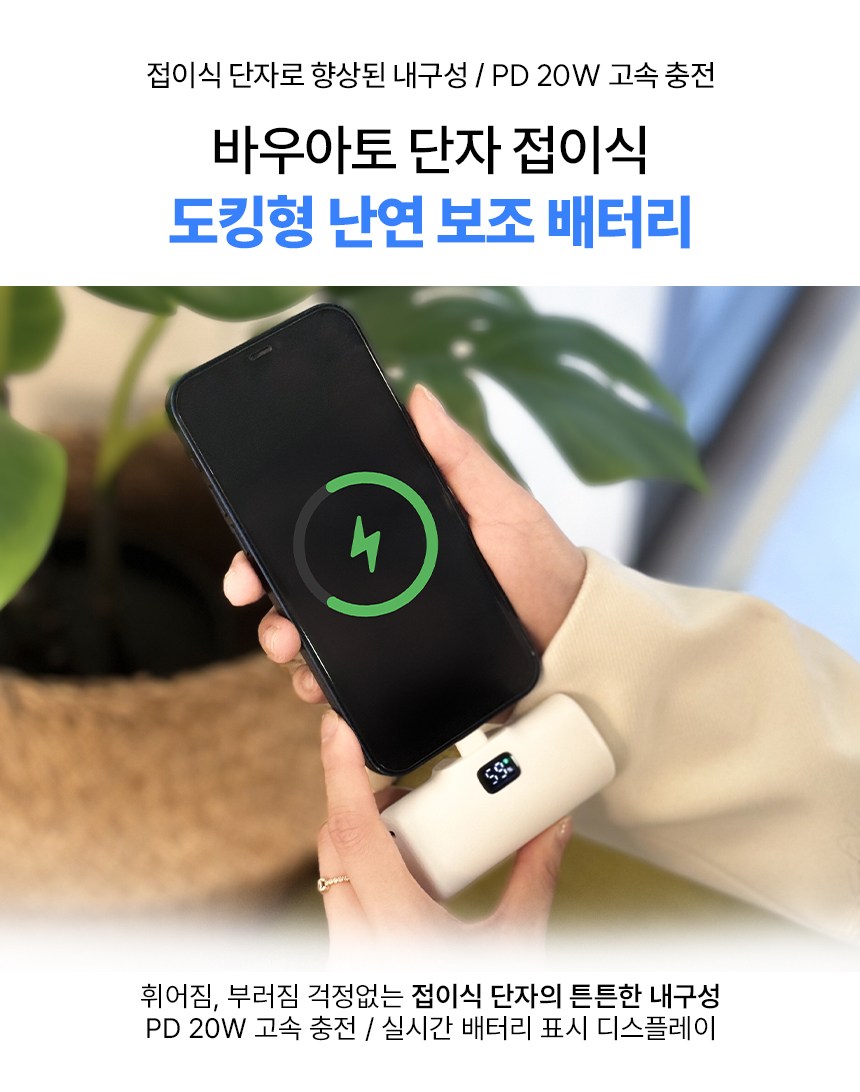 바우아토 포켓쉴 단자 접이식 PD 20W 고속 충전 미니 일체형 도킹형 보조배터리 5000mAh C타입