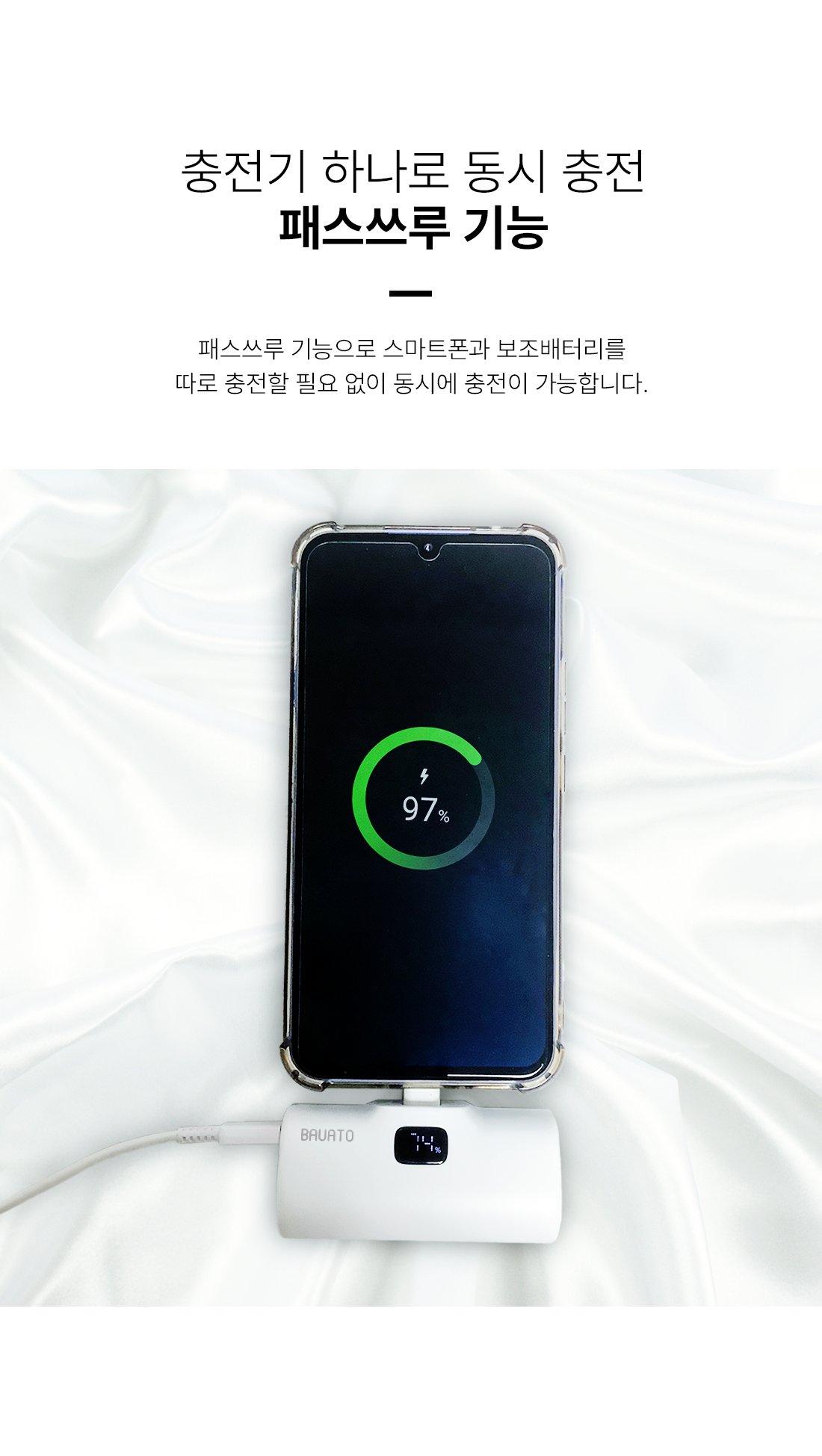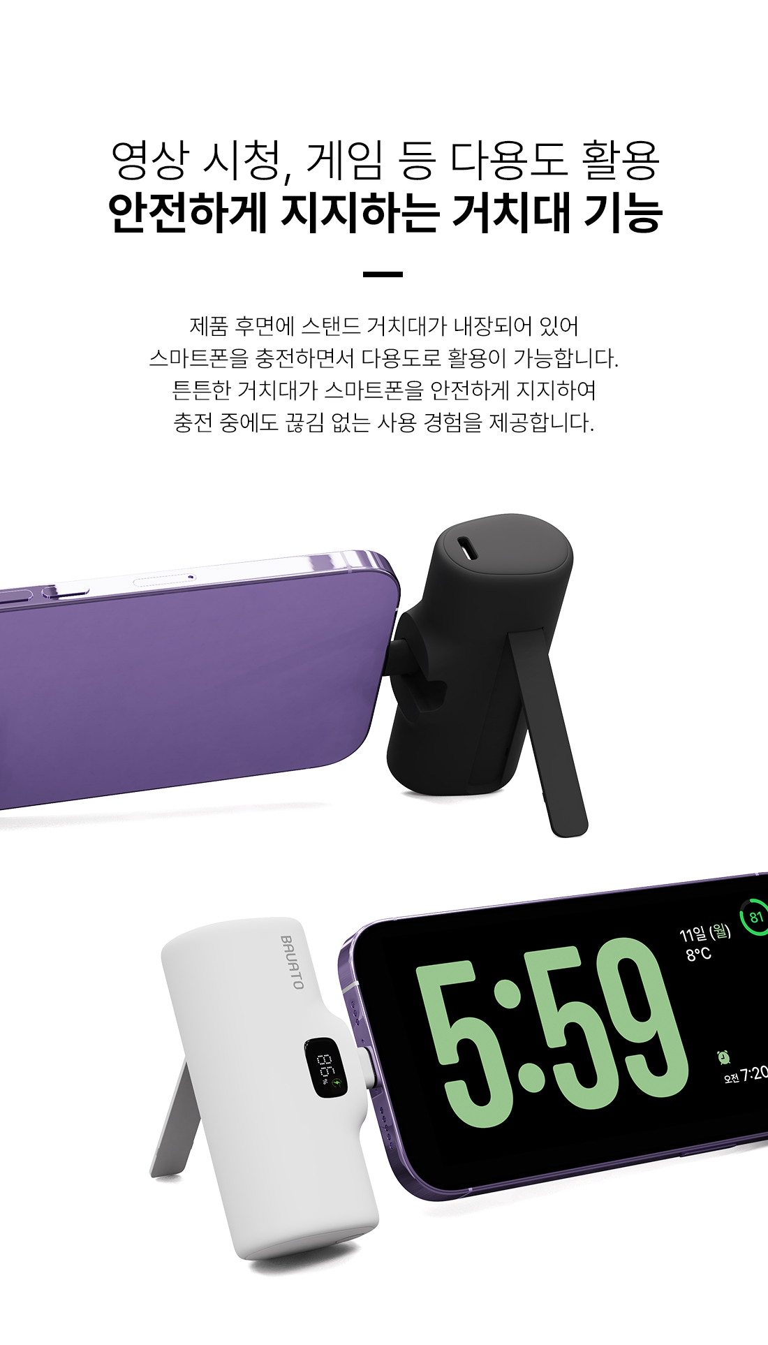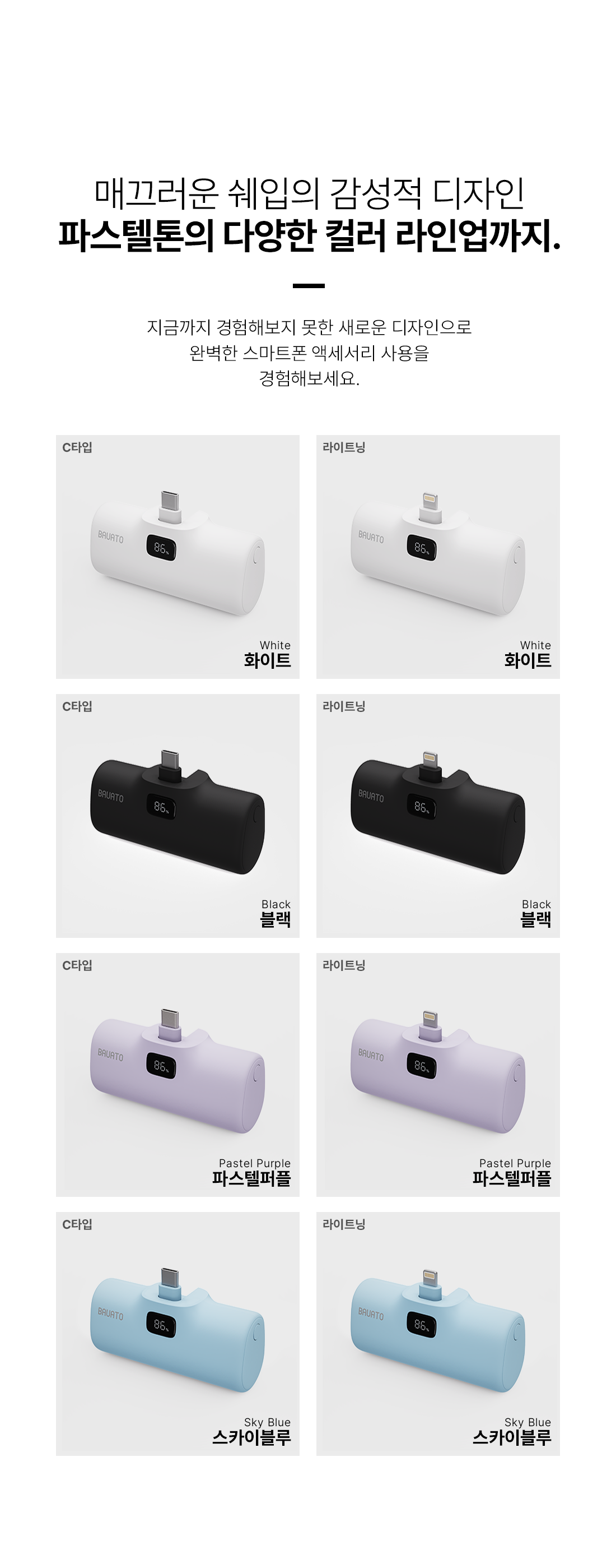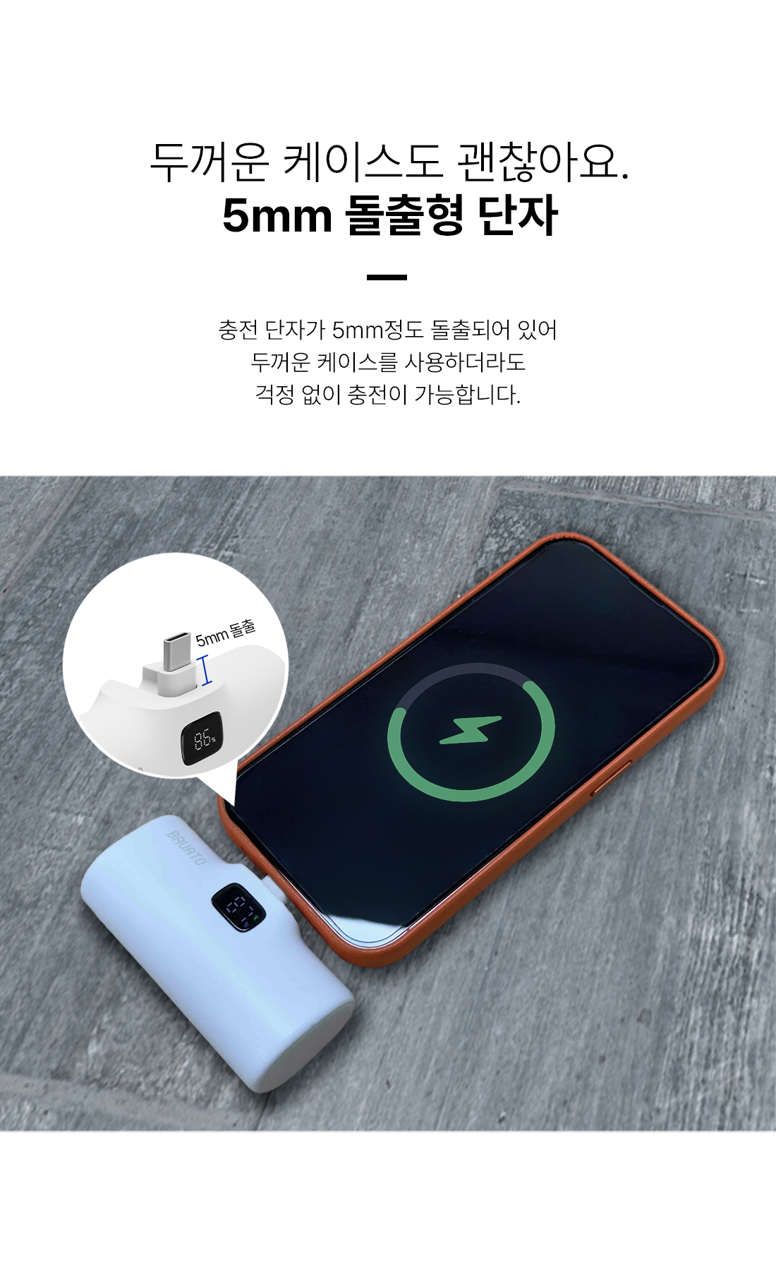 바우아토 포켓쉴 단자 접이식 PD 20W 고속 충전 미니 일체형 도킹형 보조배터리 5000mAh C타입
