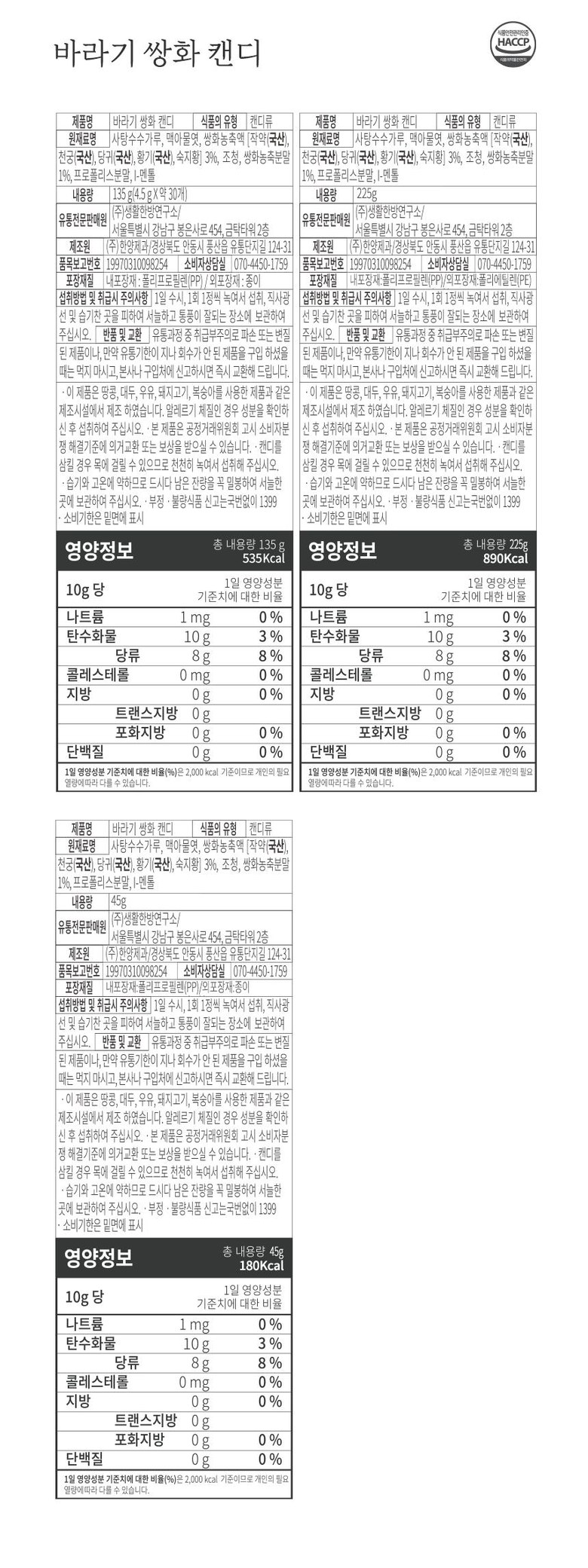 | 제품명 | 상품 상세페이지 참조 | 식품의 유형 | 상품 상세페이지 참조 |