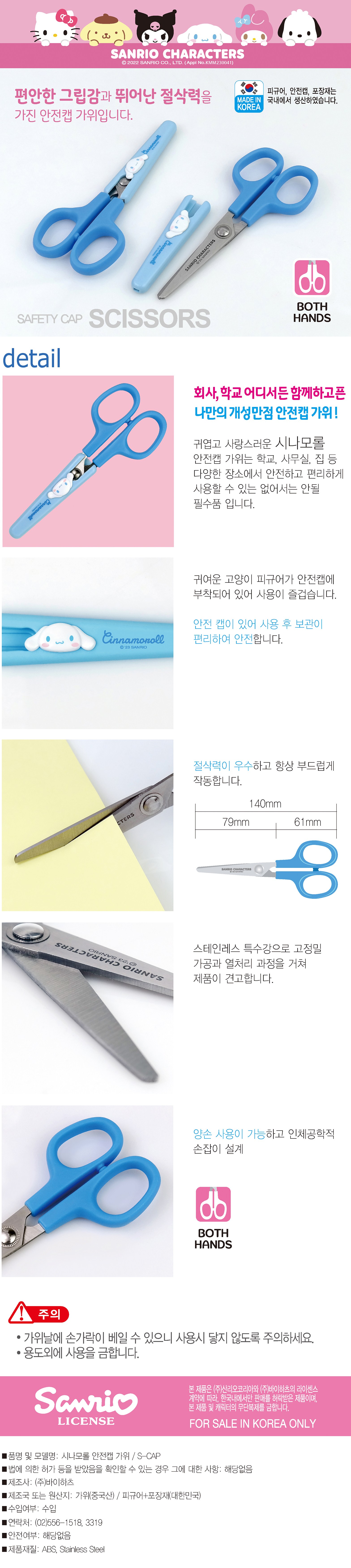 | 품명 및 모델명 | 시나모롤 안전캡 가위 | 인증/허가 사항 | 해당없음(14세이상) |