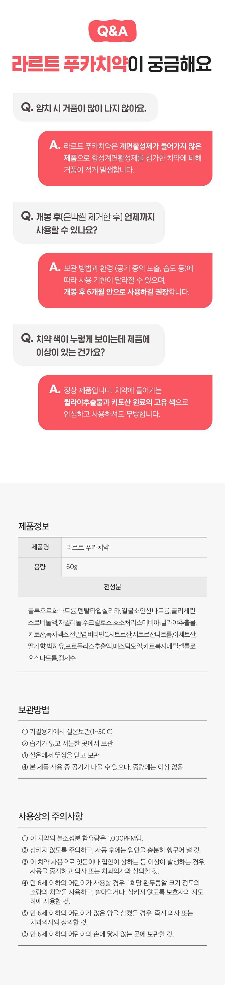 | 품명 및 모델명 | 라르트 푸카치약 | 인증/허가 사항 | 상품 상세페이지 참조 |
