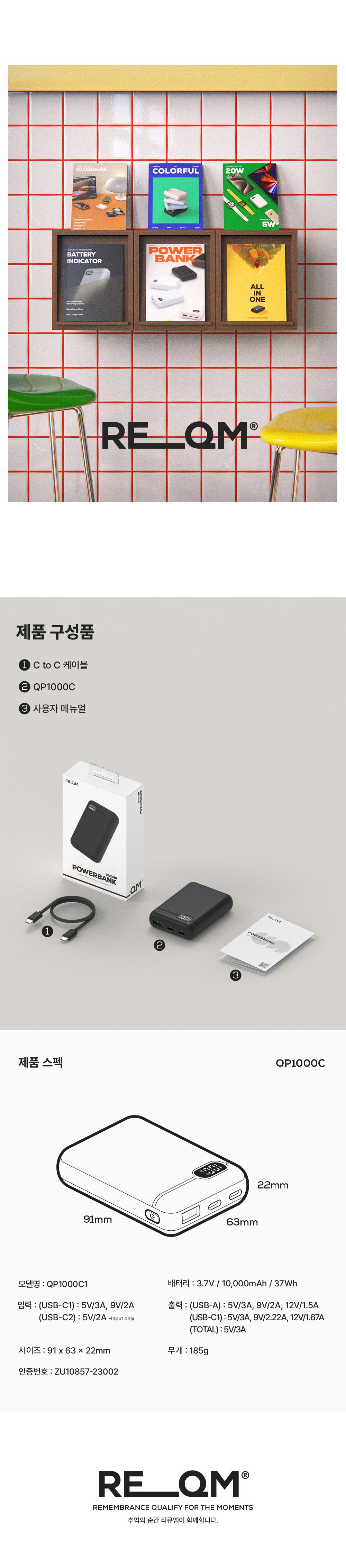 | 품명 및 모델명 | 전지/ 모델명: QP1000C / 인증: QP1000C1 | KC 인증정보 | ZU10857-23002 |