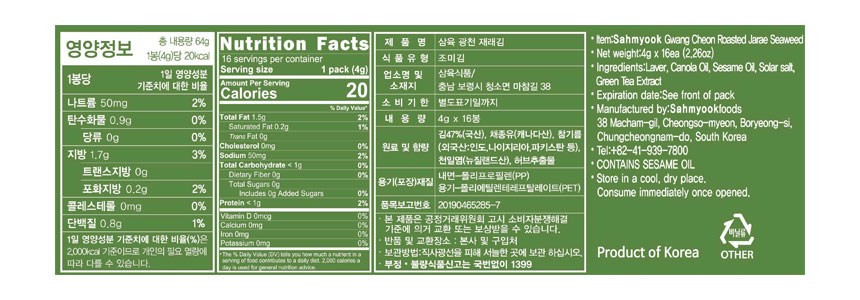 - 보관방법: 실온보관
