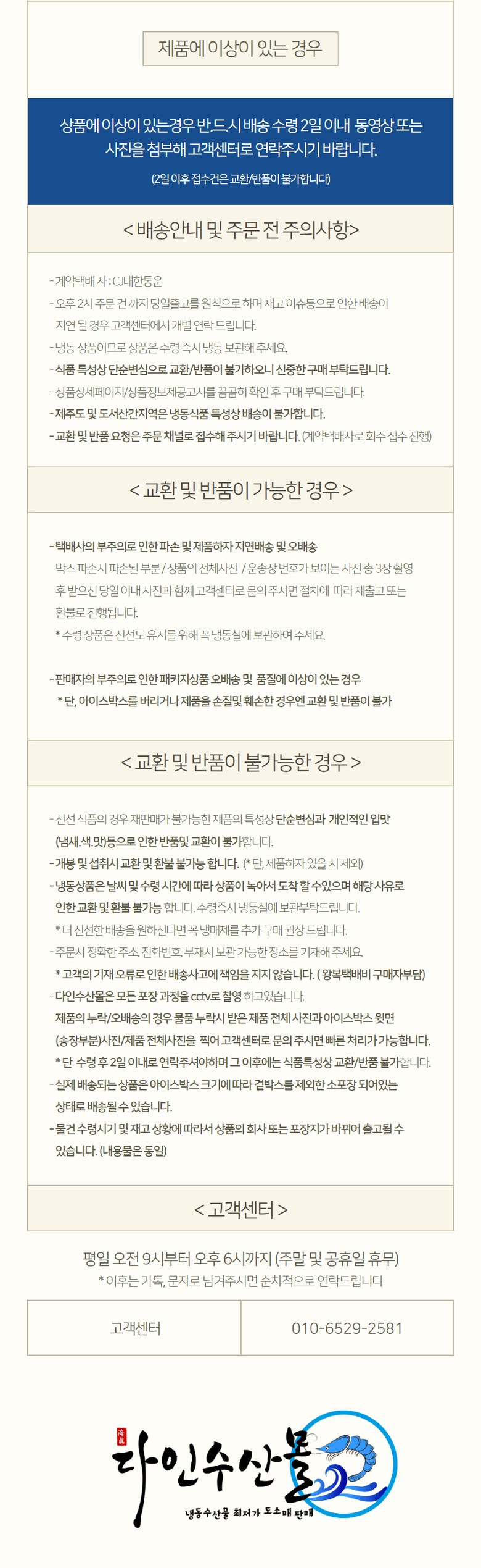 - ㆍ모니터 해상도의 차이로 인해 색상이나 이미지가 실제와 달라, 고객이 단순 변심으로 교환/반품을 무료로 요청하는 경우