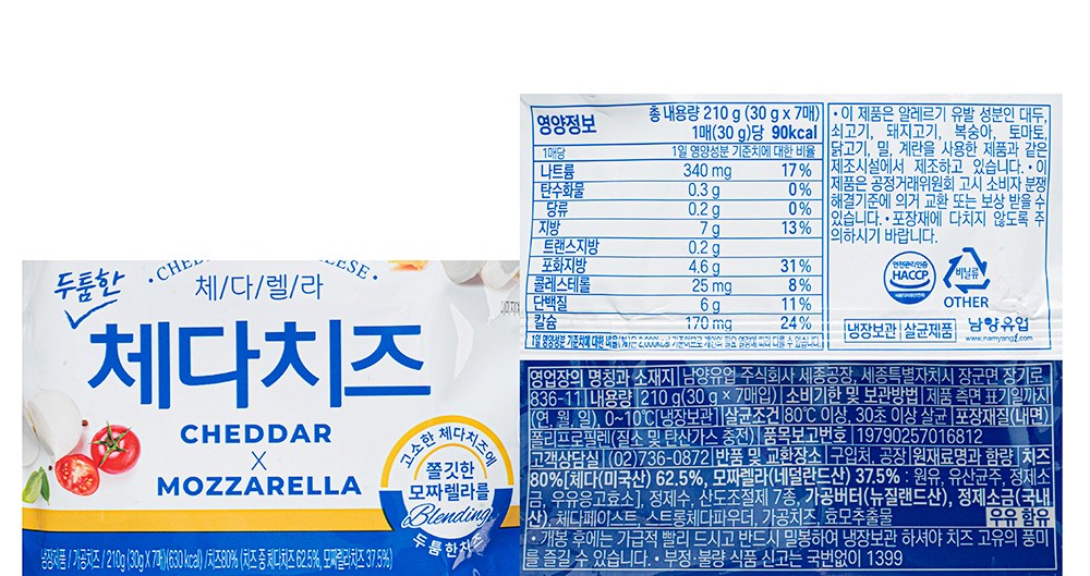 | 제품명 | 드빈치 체다렐라 체다치즈 | 식품의 유형 | 가공치즈 |