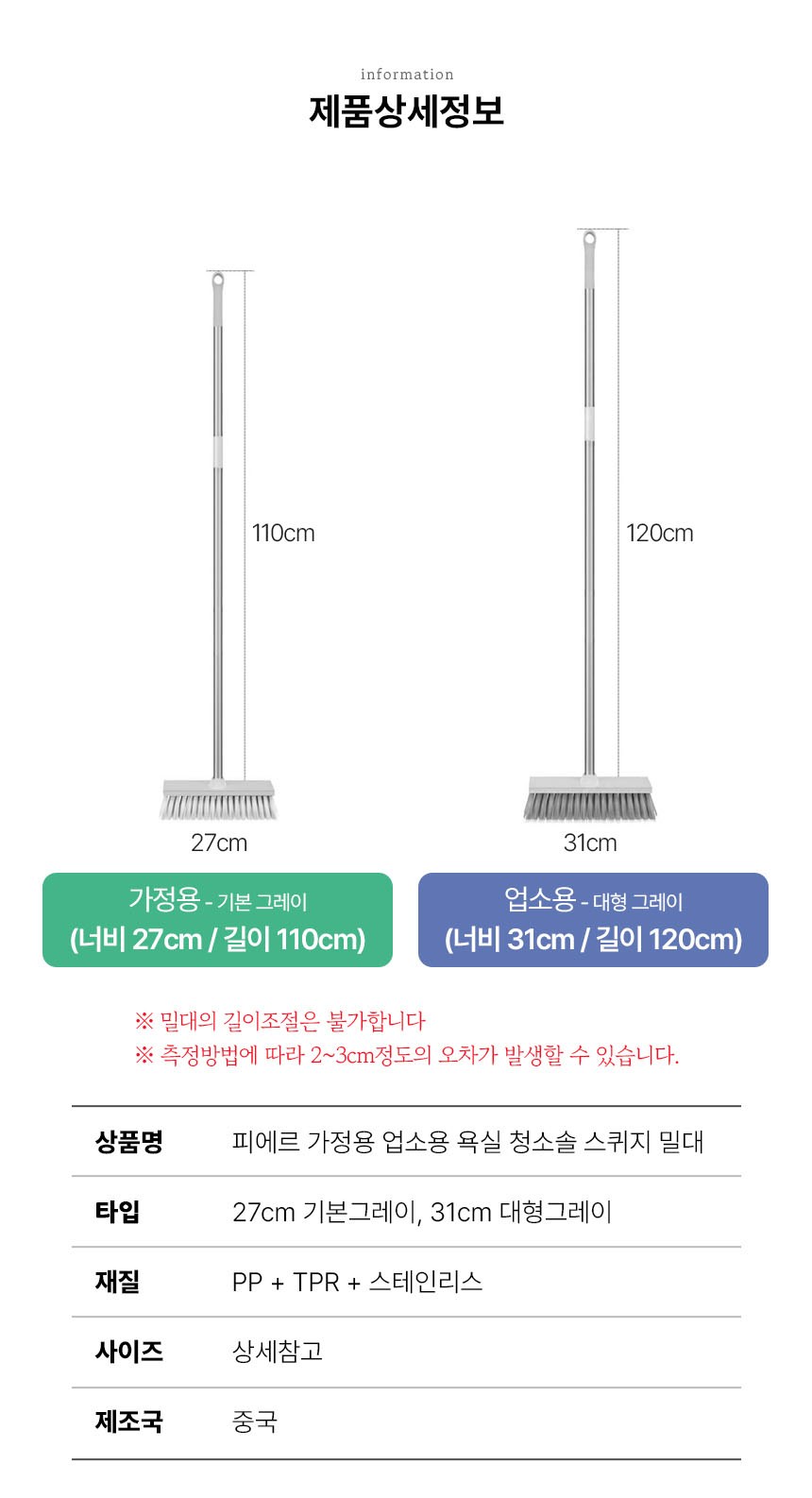 | 품명 및 모델명 | 리빙공감 피에르 가정용 업소용 욕실화장실 청소솔 스퀴지 밀대 | 인증/허가 사항 | 해당없음 |