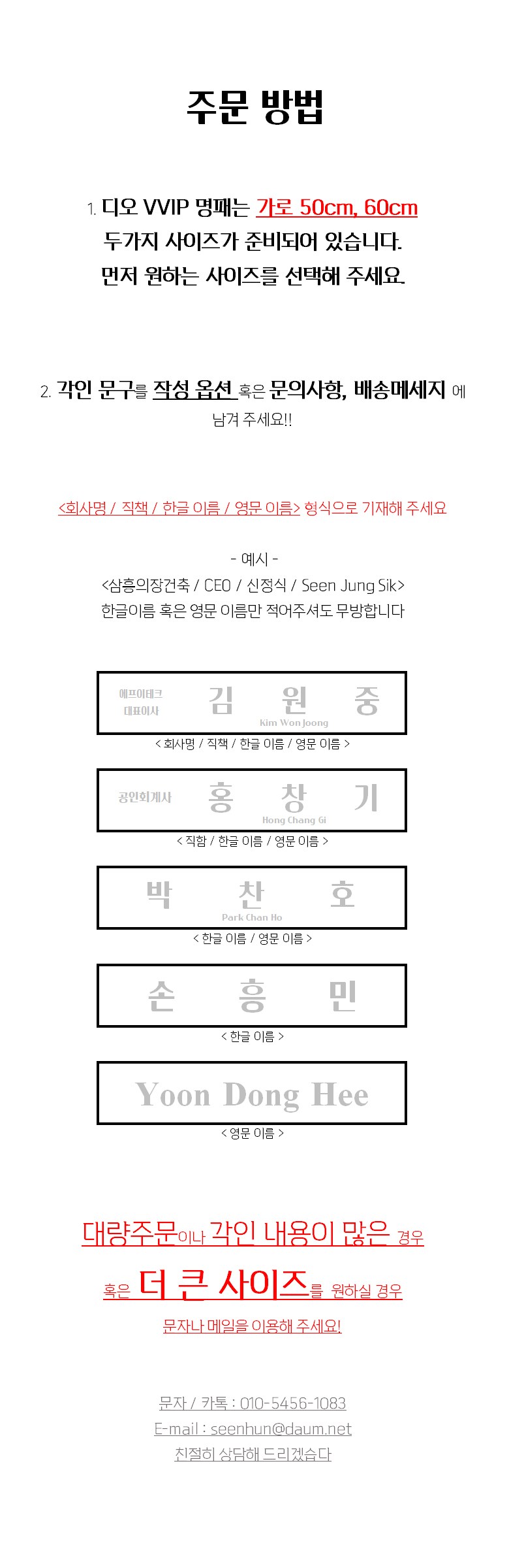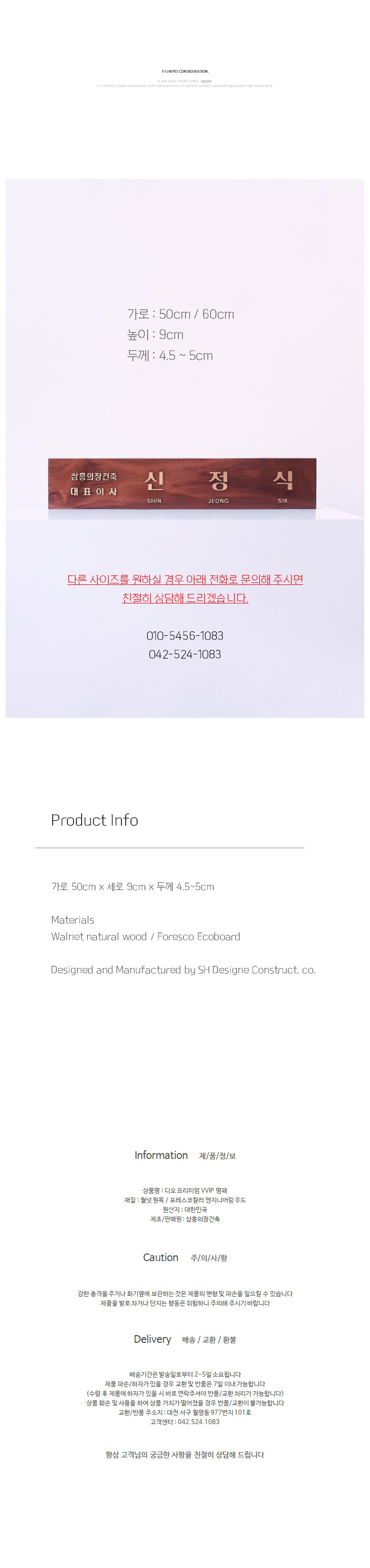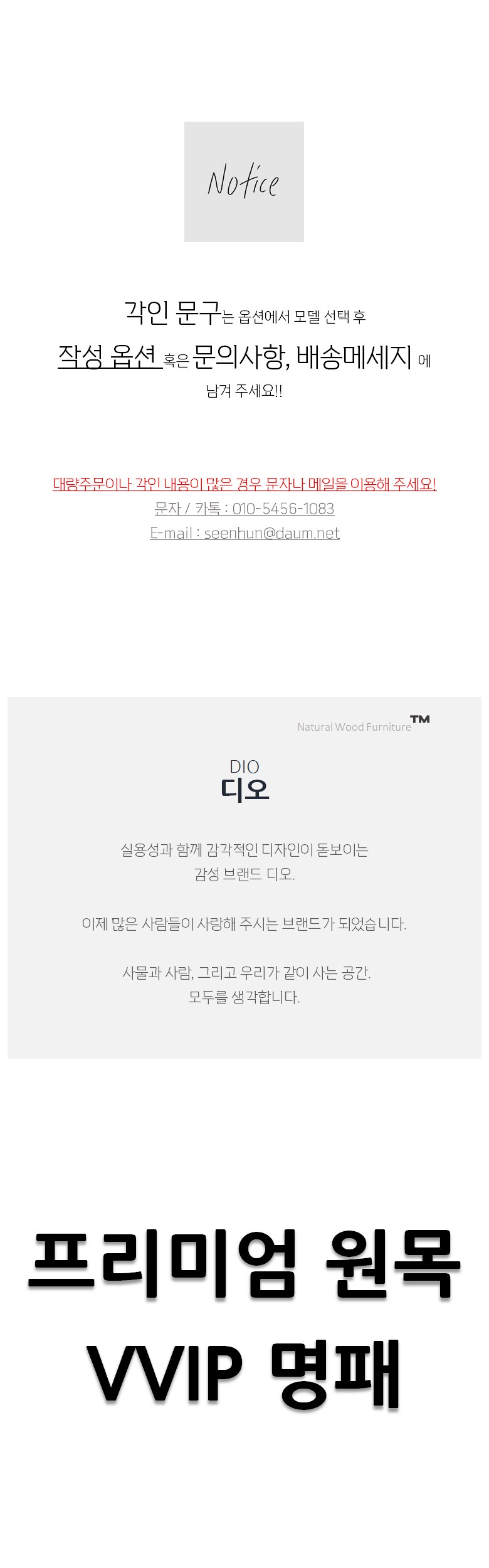 | 품명 및 모델명 | 디오 프리미엄 VVIP 원목 나무 명패 디자인 제작 | 인증/허가 사항 | 해당사항 없음 |