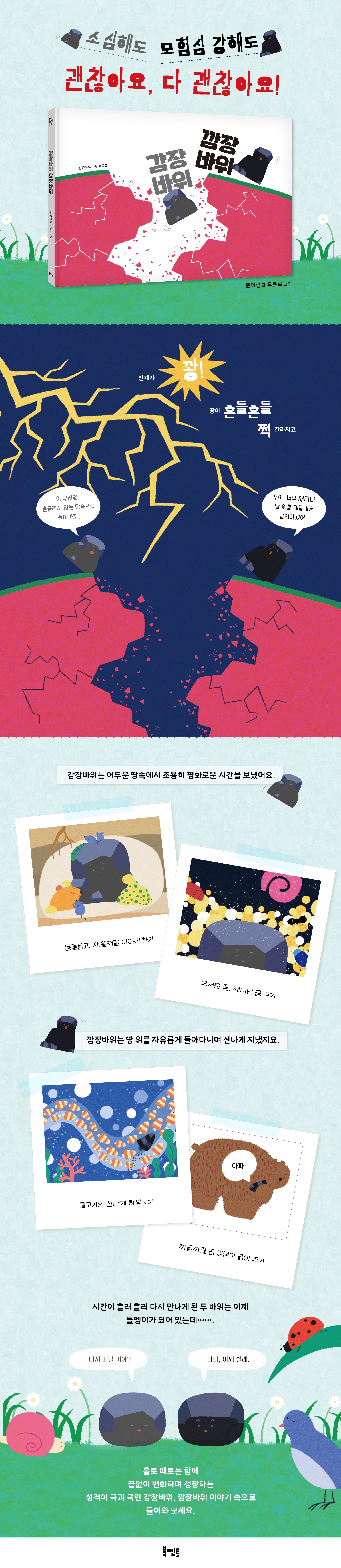 들어갔어요. 땅속에서는 땅이 흔들리지 않을 거 같았거든요. 반대로 모험심 강한 깜장바위는 땅이 흔들대니까