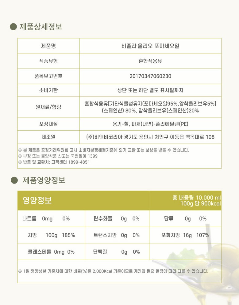 | 생산자 및 소재지 | 상품 상세페이지 참조 | 제조연월일, 소비기한 또는 품질유지기한 | 상품 상세페이지 참조 |
