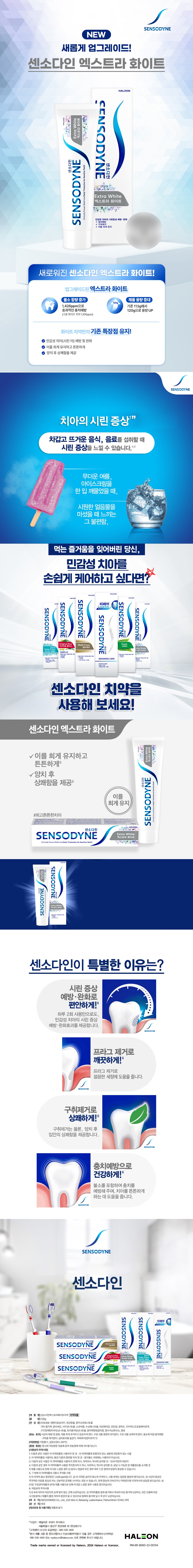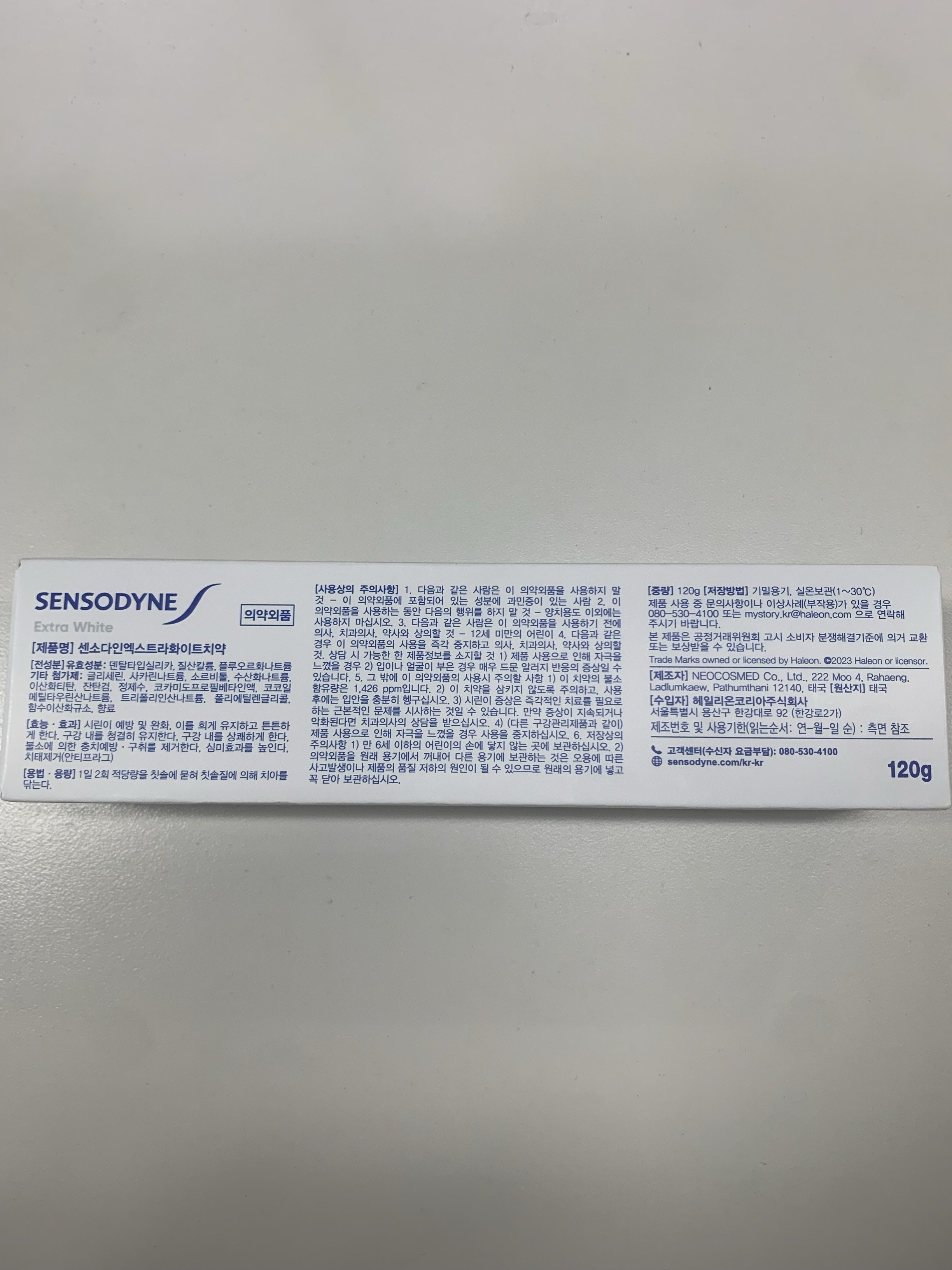 | 품명 및 모델명 | 센소다인 엑스트라 화이트 치약 | 인증/허가 사항 | 의약외품 |