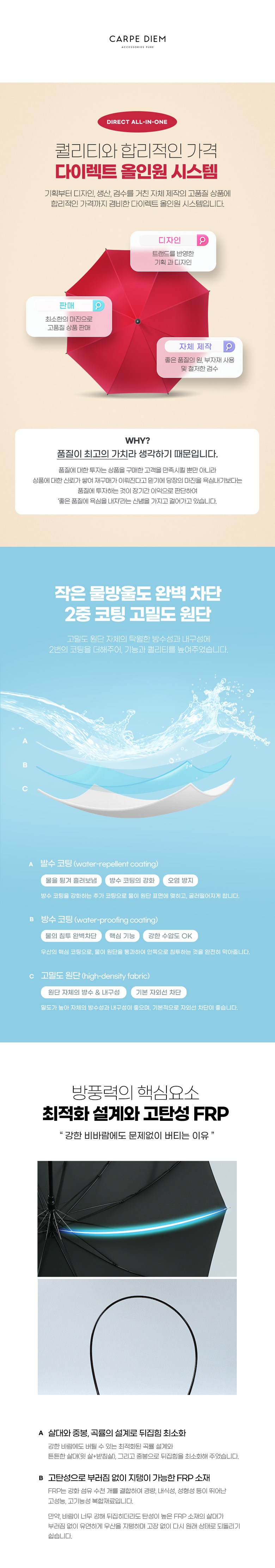 | 종류 | 일반식 자동우산 | 소재 | 폴리에스터, 살대: 컨텐츠참조, 핸들: 컨텐츠참조 |