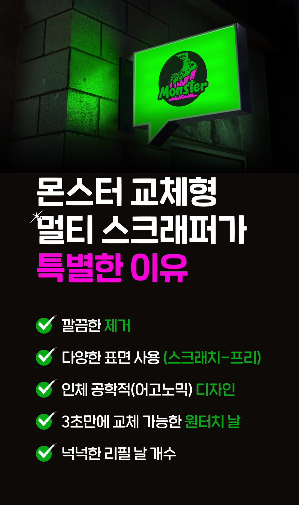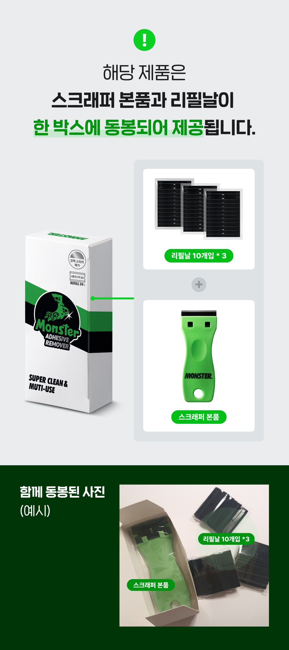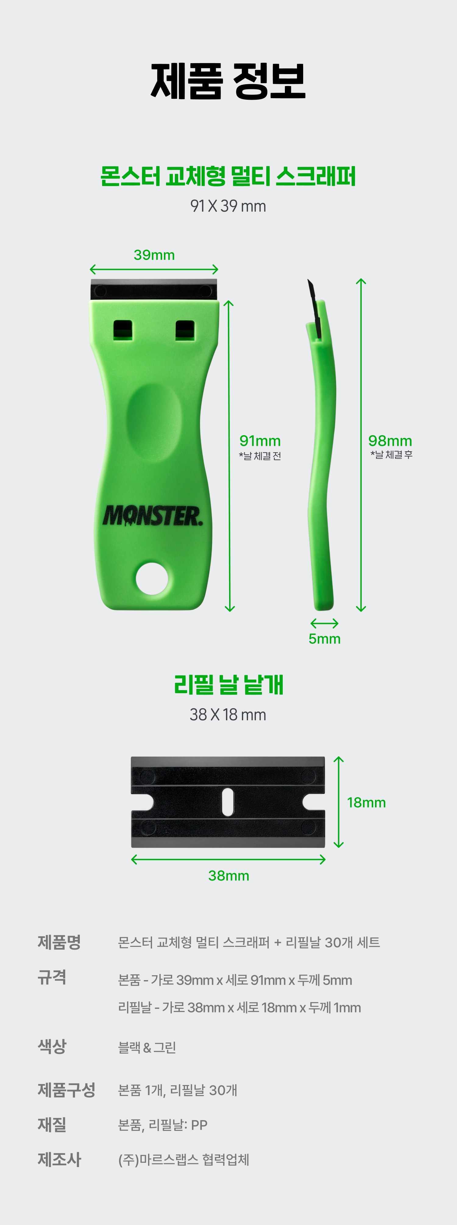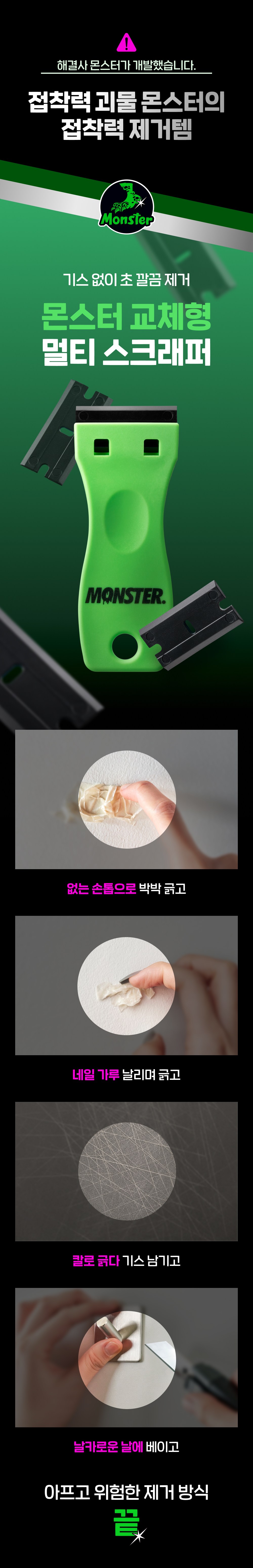 | 품명 및 모델명 | 몬스터 교체형 멀티 스크래퍼 + 리필날 30개 세트 | 인증/허가 사항 | 해당없음(14세 이상) |