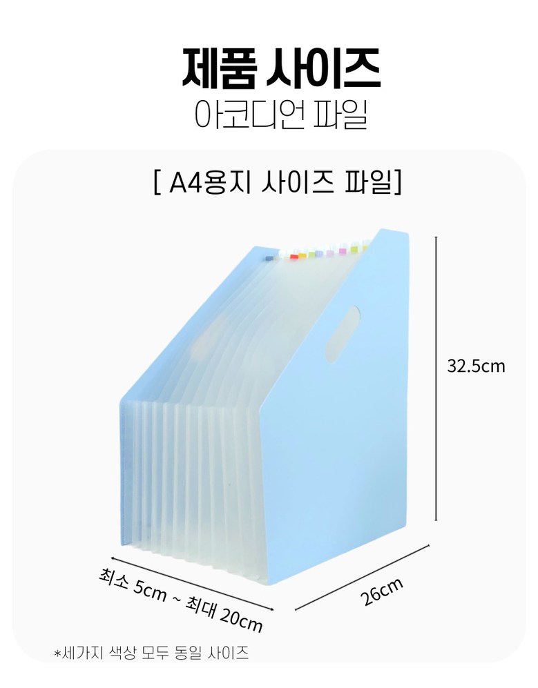 공간온 아코디언파일 오피스 대용량 문서 서류 정리 13칸, 삼각형 파스텔블루, 1개