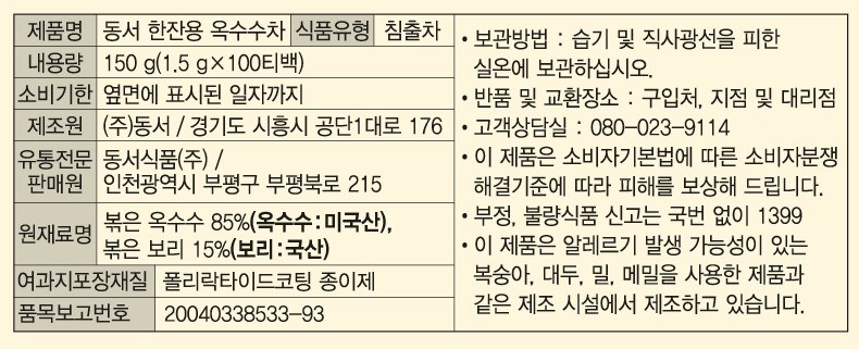 | 포장단위별 내용물의 용량(중량), 수량 | 컨텐츠 참조 x 5개 | 원재료명 및 함량 | 컨텐츠 참조 |