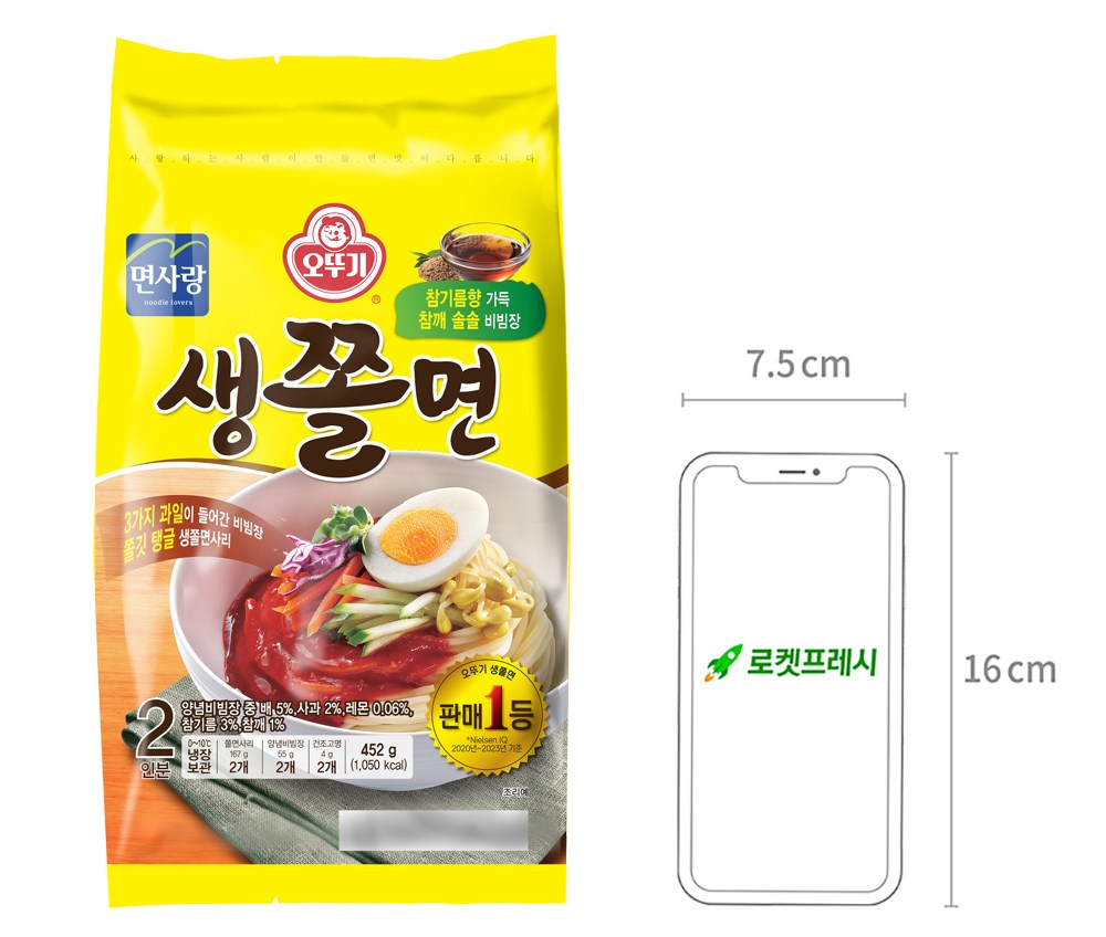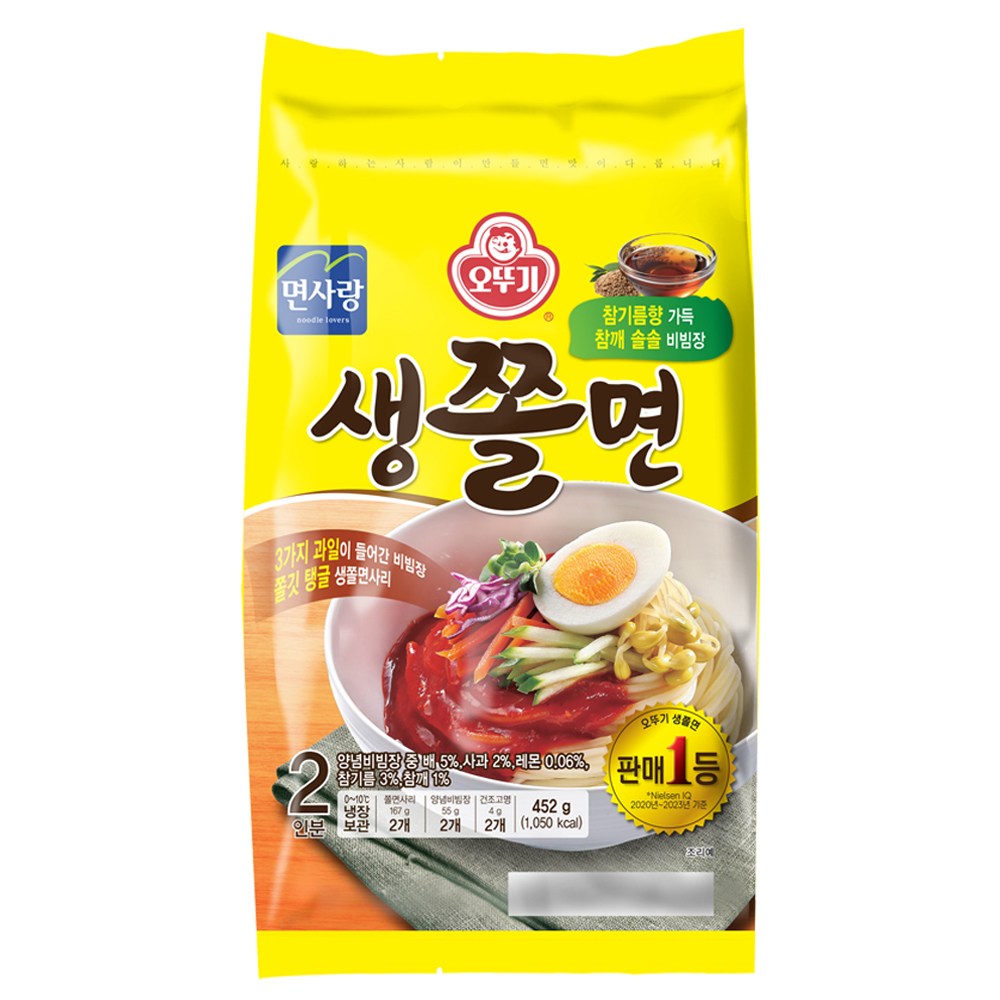 쫄면사리, 양념비빔장, 야채고명으로 구성되어 있습니다.
