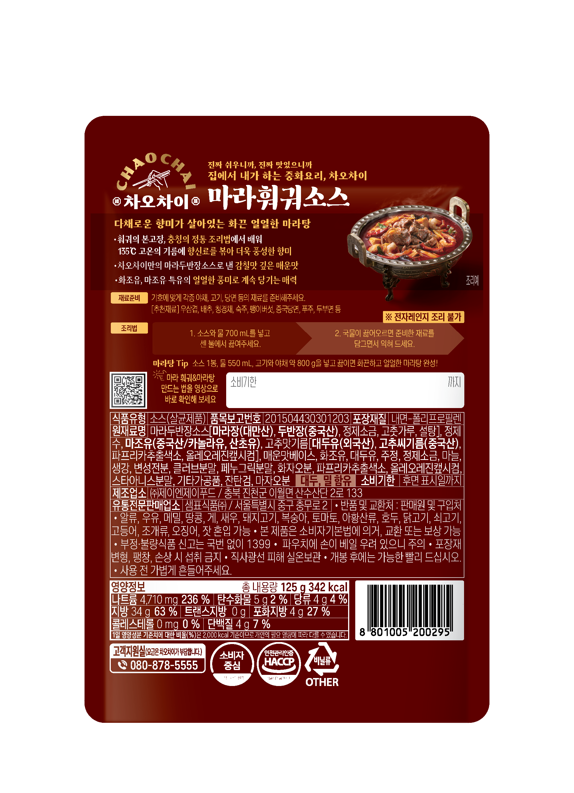 | 제품명 | 마라훠궈소스 | 식품의 유형 | 컨텐츠 참조 |