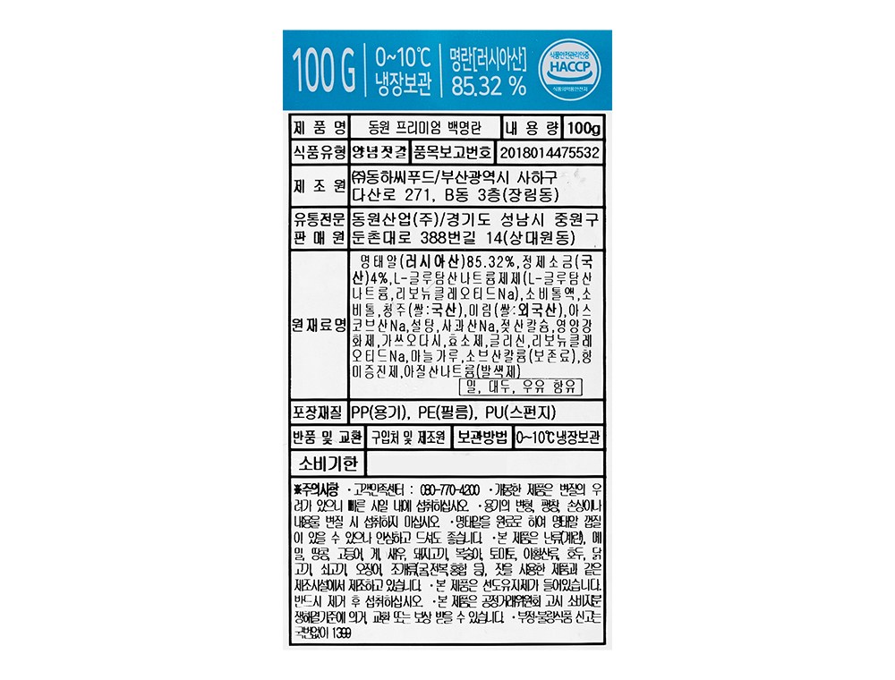 동원 백명란