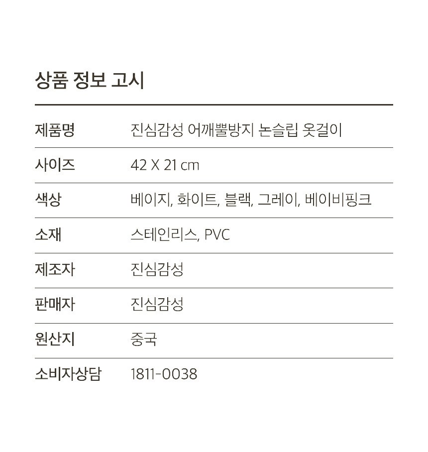 | 품명 및 모델명 | 어깨뿔방지 논슬립 옷걸이 | 인증/허가 사항 | 해당없음 |