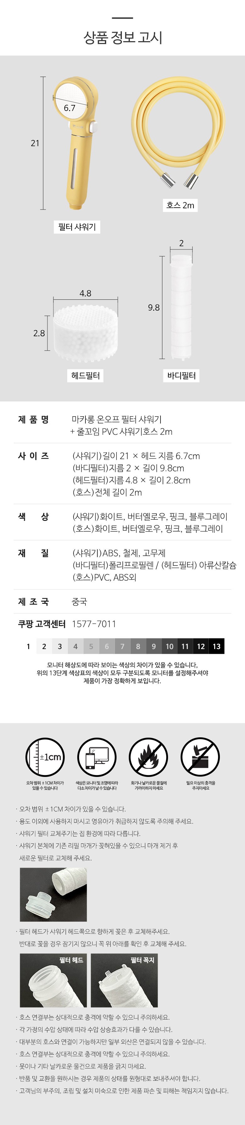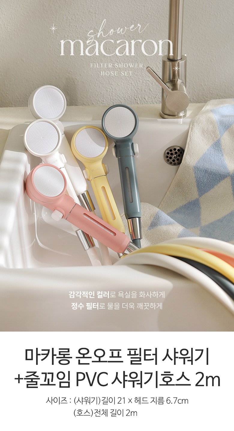 | 품명 및 모델명 | 마카롱 온오프 필터 샤워기+줄꼬임 PVC 샤워기호스 2m,화이트 | 인증/허가 사항 | 해당없음 |