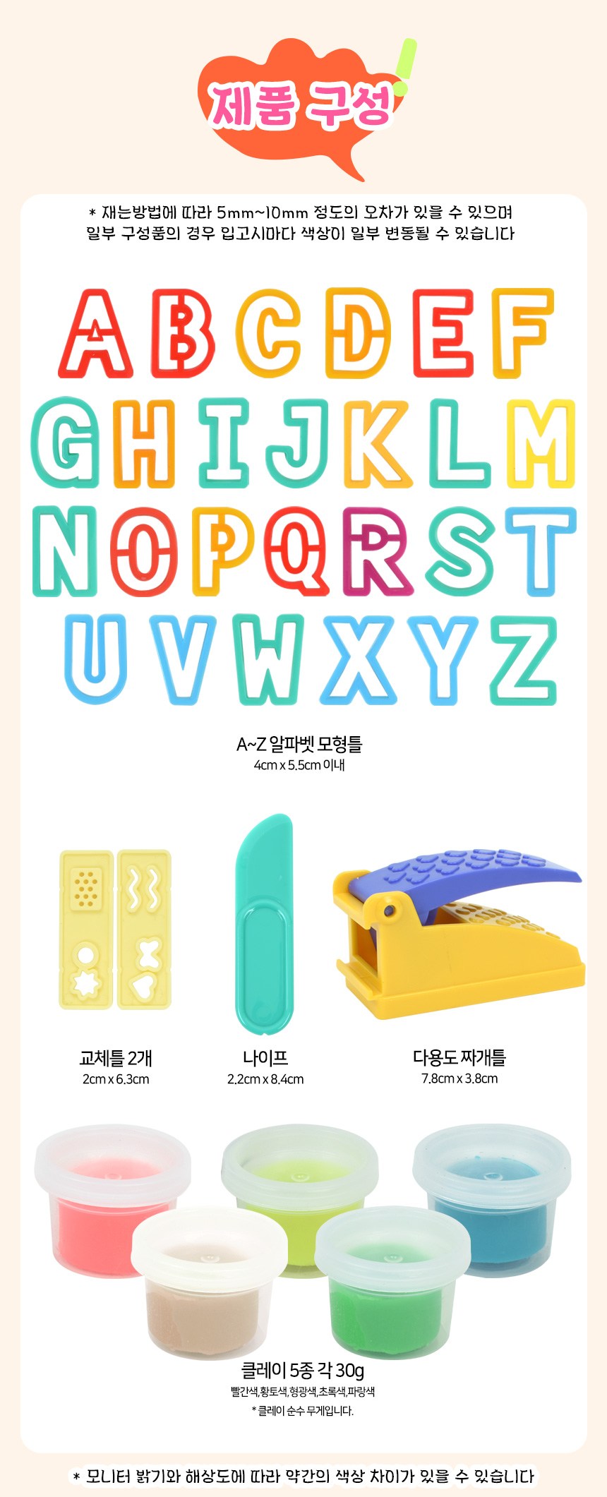 | 품명 및 모델명 | 오즈토이 플레이 컬러 도우 유아용 클레이 세트 | KC 인증정보 | CB067R1923-4001 |