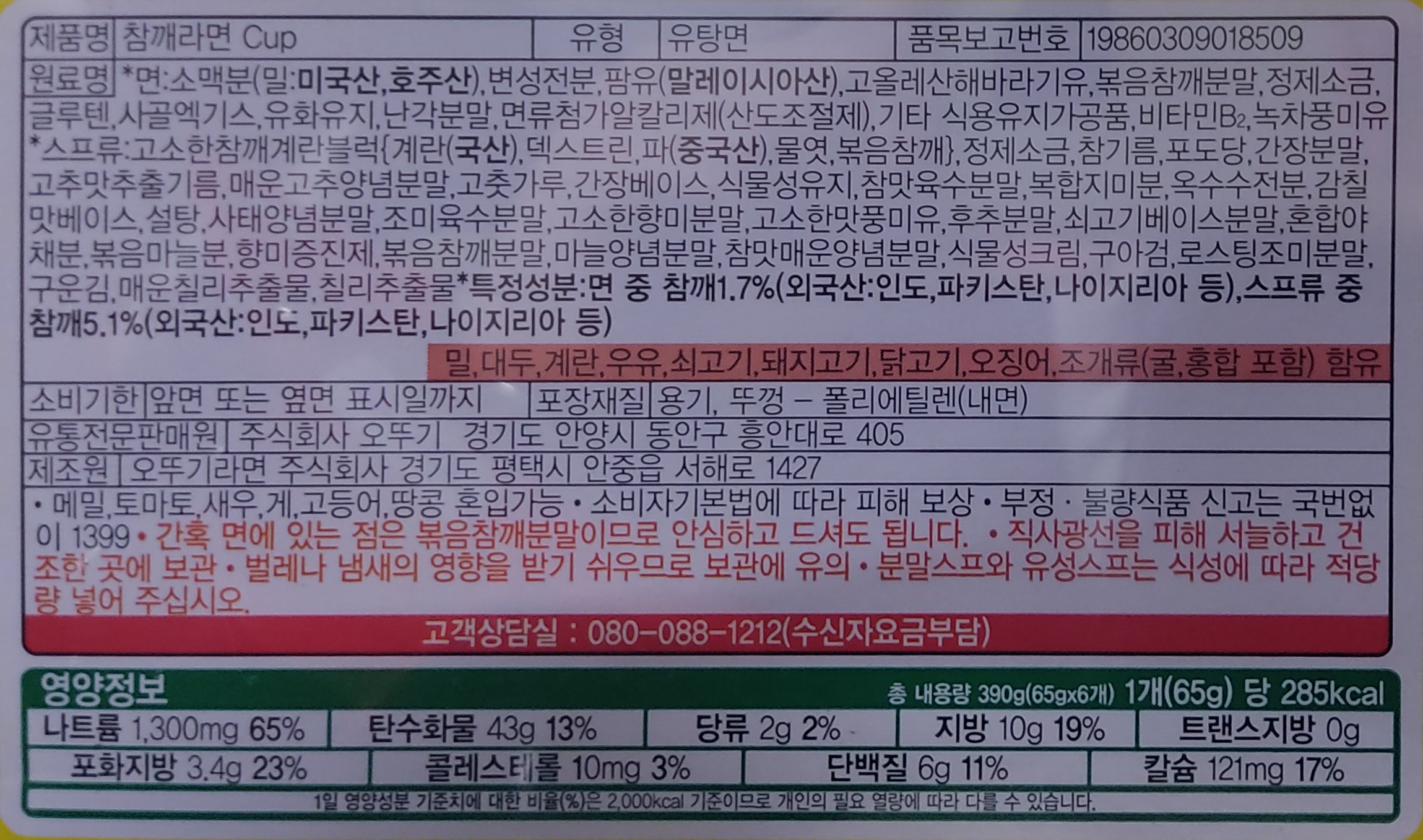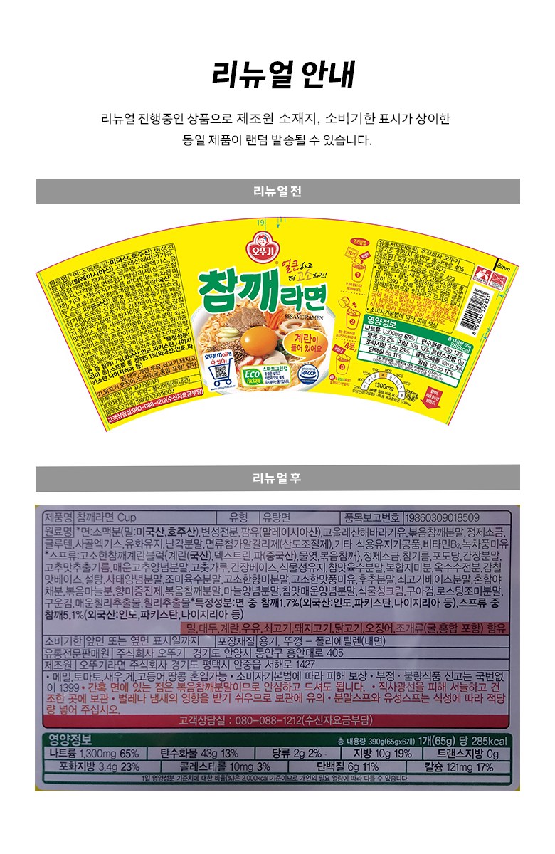 | 제품명 | 참깨라면 Cup | 식품의 유형 | 유탕면 |