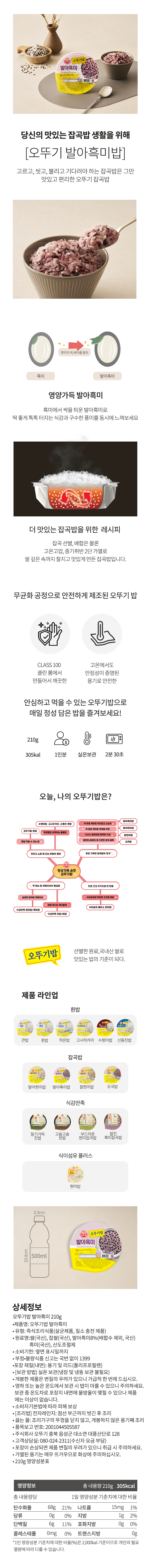 | 제품명 | 오뚜기밥 발아흑미 | 식품의 유형 | 컨텐츠 참조 |