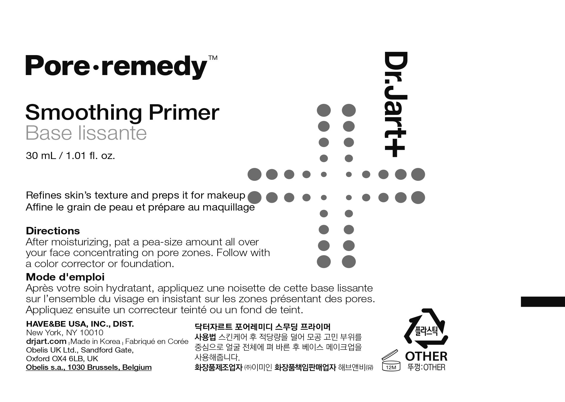 | 사용기한 또는 개봉 후 사용기간 | 본 상품은 해당 물류센터 직발송 상품인 관계로 제조연월일 및 사용기한 정보가 매번 변경되므로 상단 사용기한 정보를 참고해 주세요. | 사용방법 | 스킨케어 후 적당량을 덜어 모공 고민 부위를 중심으로 얼굴 전체에 펴 바른 후 베이스 메이크업을 사용해줍니다. |