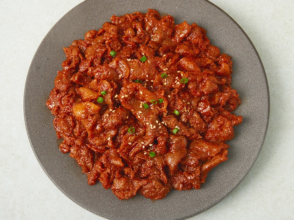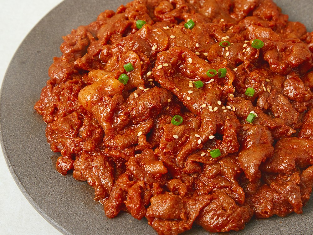 매콤하고 고소한 감칠맛이 매력적인 제육볶음이에요. 돼지 목전지를 사용해 쫄깃쫄깃한 식감과 촉촉한 육즙이 돋보이지요. 볶기만 하면 완성되어 간편하답니다. 밥반찬으로 즐겨도 좋고, 술안주로 활용해도 좋아요.