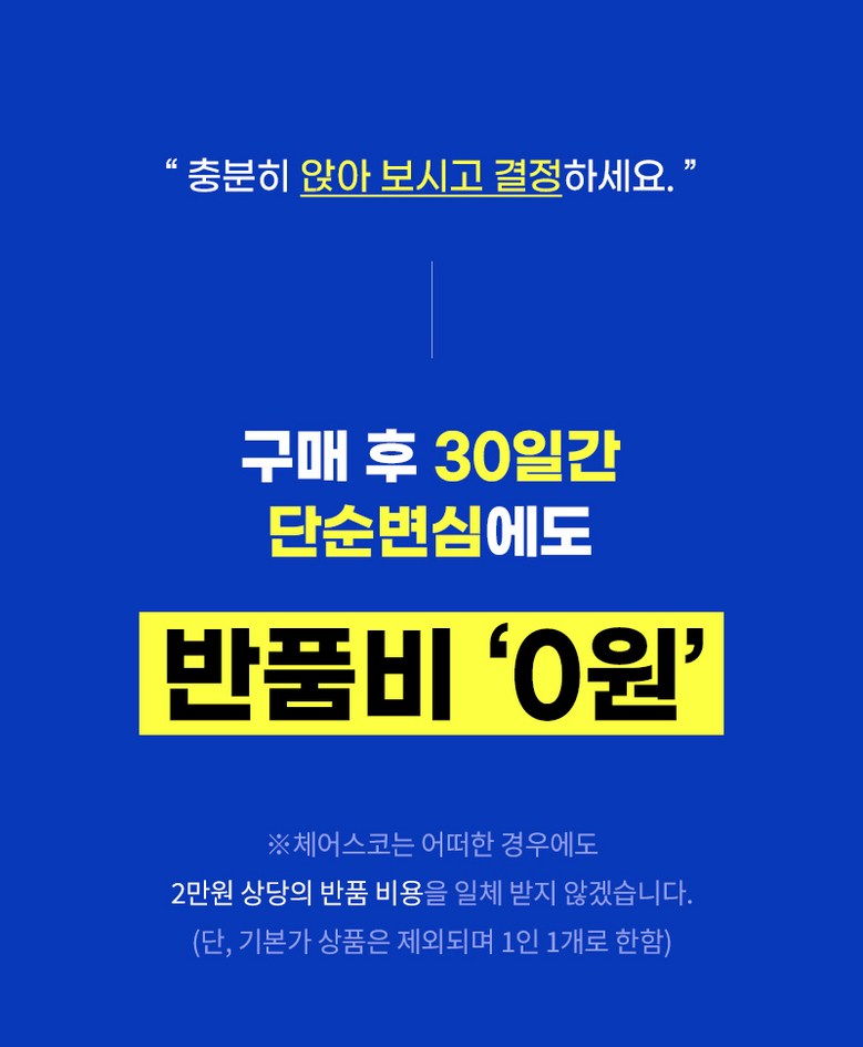 | 교환/반품 비용 (왕복비용) | 0원 - 단, 고객 변심의 경우에만 발생 - 도서산간 및 일부 지역 추가비용 발생 |