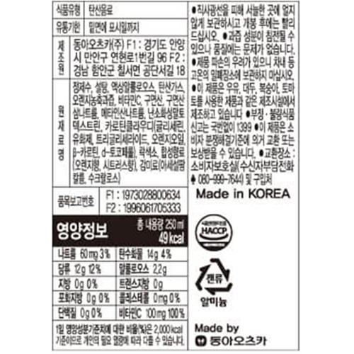 | 제품명 | 오란씨 오렌지 | 식품의 유형 | 컨텐츠 참조 |
