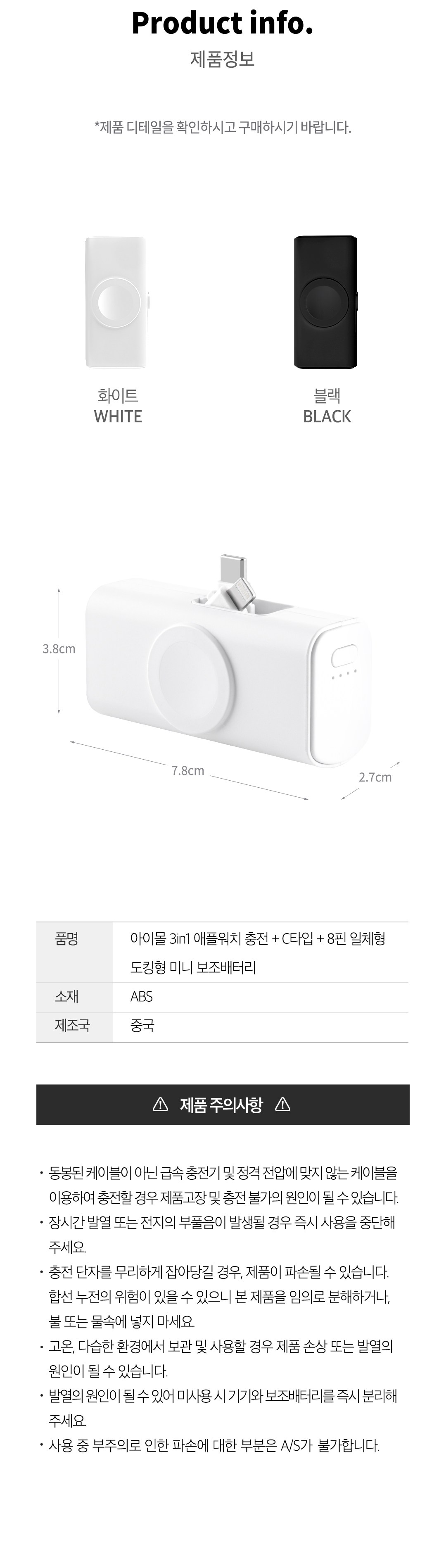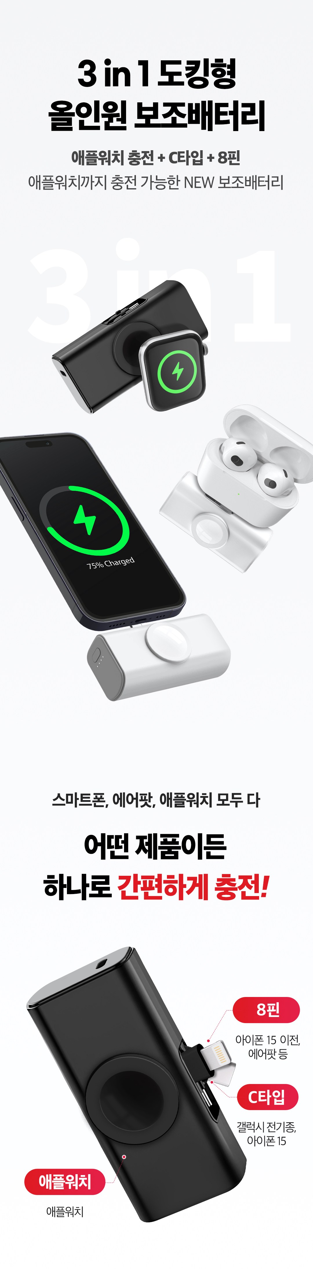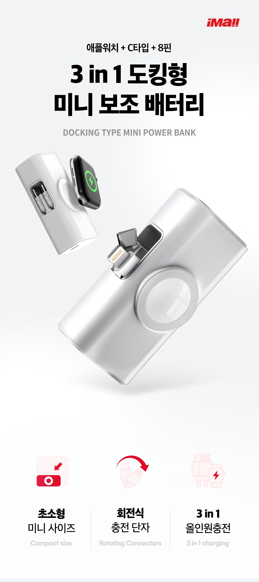 | 품명 및 모델명 | 3in1 도킹형 미니 보조배터리 / P6 | KC 인증정보 | 본품: R-R-mal-P6 전지: XU101648-21004A |