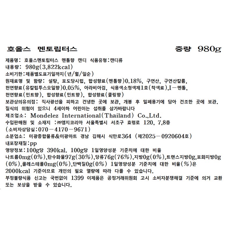 | 제품명 | 상품 상세페이지 참조 | 식품의 유형 | 상품 상세페이지 참조 |